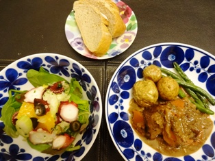 牛肉の黒ビール煮揚げじゃがいも&いんげん たことセロリ、ブラックオリーブのオレンジマリネライ麦パン * * * * * * * * * * * * * ビール煮に添えようと焼いたライ麦パンです。ちょっとライ麦の配合が多くて、発酵具合が微妙(・・;)