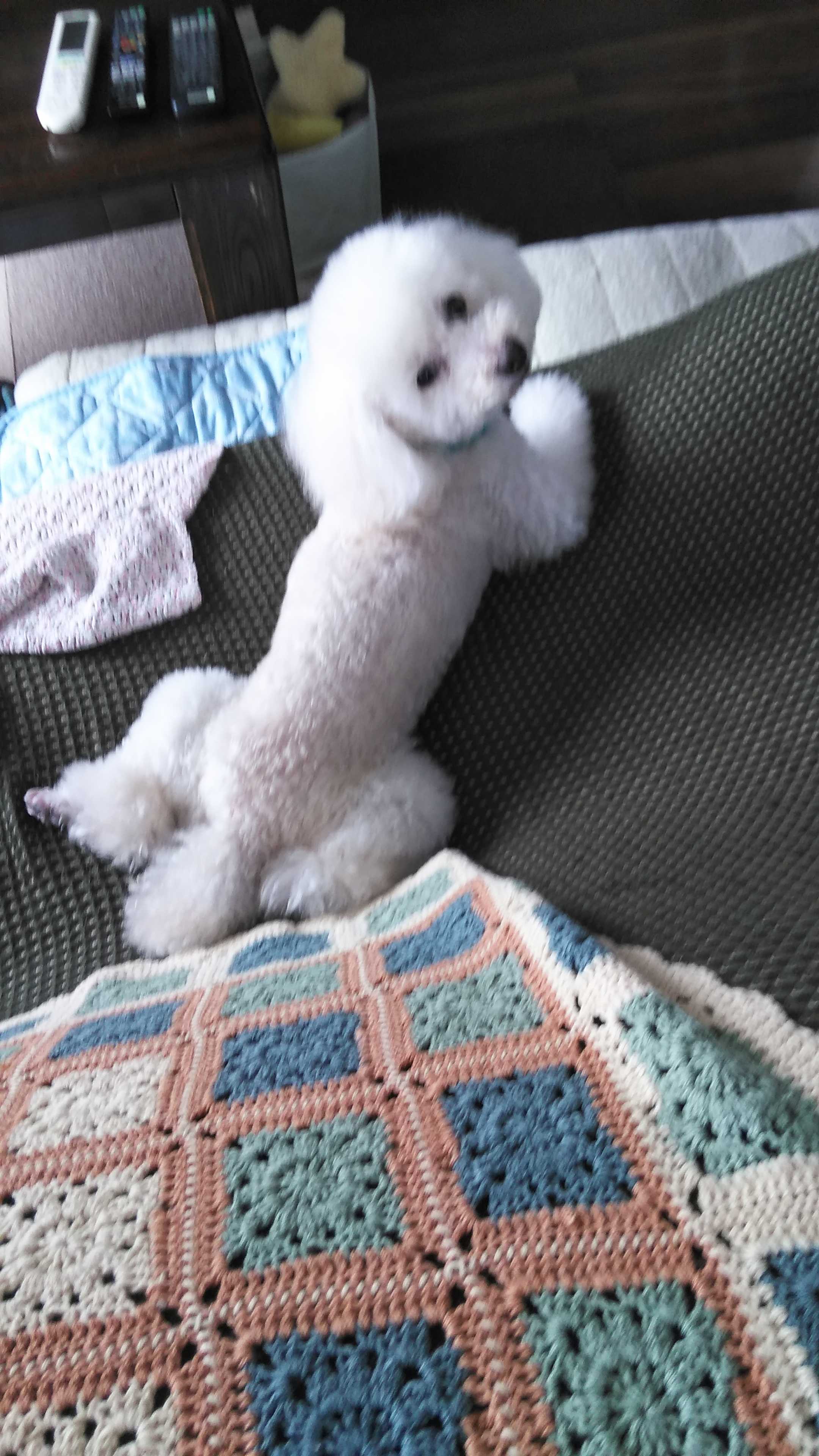 朝食→トマト、サラダ、ウィンナー2本、目玉焼き、焼きのり、ご飯、紅茶朝食後→カフェオレ昼食→サラダ、ブルーベリージャムヨーグルト、チーズハムトースト、豆乳ココア夕食→サラダ、かぶと舞茸の煮物、豚肉の胡麻ゴマ焼き、ご飯、カボチャの味噌汁、紅茶夕食後→アイスコーヒー