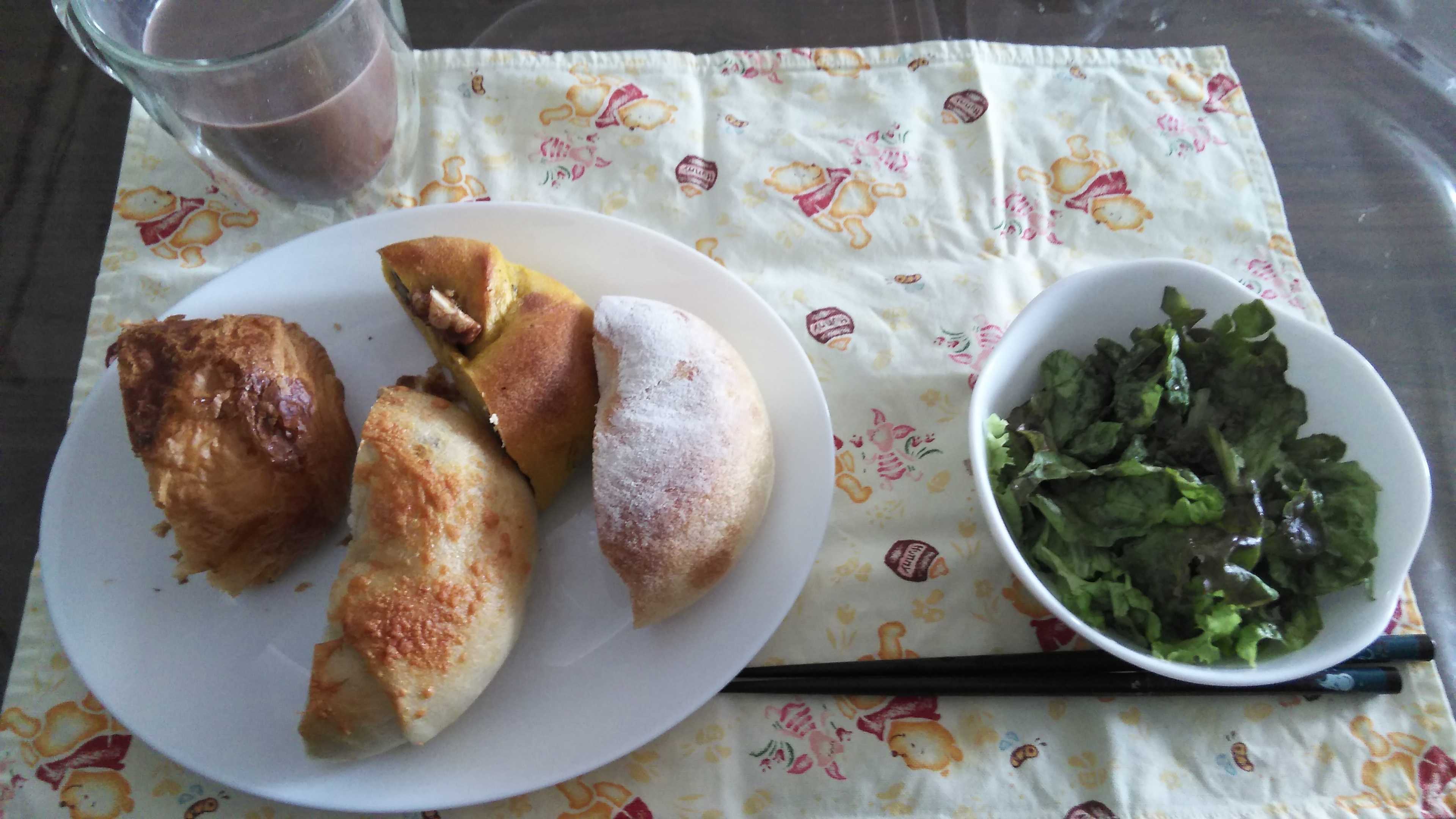昼食→サラダ、調理パン2個分、豆乳ココア