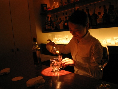 昨日は、本当によく飲みました。ワインは一人1本は飲んだ計算です。そのお酒をさらにすすませたのがこのお店。なんと3坪6席しかないバーです。きれいな方がカクテルなどを作ってくれます。場所は教えたくありません。