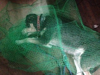 ゴミの日カバー(使用前)で遊ぶオレ 楽しー