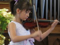 バイオリンを初めて1年3ヶ月、初めての発表会がありました。とても緊張していたのですが、リハーサルの後にはリラックスできてたように思います。また、参加した子たちがみな6−12才くらいだったので、仲間的な雰囲気で楽しく演奏できました。ガボットという曲を演奏したのですが、とても良く弾けていました。2ヶ月くらい練習したのですが、今まででは一番長い曲、最後に一回ミスがありましたが、冷静に立ち直ってくれたので、それもまた良い経験になりました。発表会の次の日には、朝起きて「バイオリン弾かなきゃーーーっ」と思ったとか。。。そして「来年の発表会には大人みたいに弾いてやるっ」と鼻息荒く決心を語ってくれました。一人でステージに上がり発表するのは人生初めてだったのですが、それだけに発表会の前と後では練習の取り組み方なんかがガラッとかわりました。発表会ってすごいねー!!7才で始めたので、ちょっと遅いデビューですが、これからも本人にやる気がある限り頑張って行こうと思います。