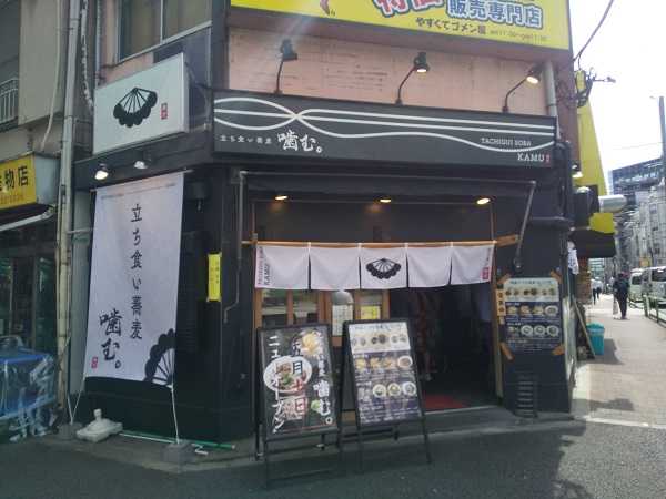 楽しい楽しい立ち食いそばの新店巡り【立ち食いそば 噛む。】 千代田区神田神保町2-48-1 ホームページお弁当の【まあまあ屋・濃厚担々麺麻麻屋 神保町店】だった店が 業態変更で立ち食いそば屋として5月7日オープン。弁当屋+他の飲食店(居酒屋・焼肉等)形態の【まあまあ屋】を複数経営するイーエムグループの新業態店舗。神保町駅が最寄り駅で水道橋方面に続く白山通り沿いにある。店名通り、噛み応えのある中太麺を使用したそばが特徴らしい。メニューをズーム 主力メニューは、『肉盛りつけ蕎麦』で、特に『牛肉つけ蕎麦』が人気らしい。オーセンティックな立ち食いそば屋の天ぷらメニューもある。営業情報。あらっ、朝早くから夜まで通し営業なんだ 注)開店当初の情報だと3~4pmはクローズ入店。左下に天ぷら類がいろいろ貼ってあるね。お店の一押しの『肉盛りつけ蕎麦』じゃなくて、天ぷらのそばがいいや。券売機をタッチする。とりあえず、右上の「温かいそば」をタッチしてみようか。食べたい『紅生姜天蕎麦』や『春菊天蕎麦』等の画面がない。閑散時間帯なので後客がいないので他の画面展開も見ようとしたらフロア担当の鬼遺産がやってきて説明開始。撮影はあきらめ「冷たいそば」をタッチして『冷やかけそば』+天ぷらにしようと思ったけど、『冷やかけそば』はなくて『冷やしたぬきそば』を選ばなくちゃならないんだね。じゃぁ、そんなに暑くもないから温そばでいいや。『かけ蕎麦』とトッピング『紅生姜天』にする。閑散時間帯でクレカ決済が可能なので鬼遺産に話したら、この券売機はクレカ決済機能は連動していないので、別のタブレット端末で入力し直してくれたやがて後客もボチボチやってきた。完全立ち食いだね。配膳をやってくれたのは閑散時間帯だからかな? 水と下げ膳はセルフね。いただいたのは『かけ蕎麦+紅生姜天』\500+\150=\650。かなりの暗黒汁で濃いめの味付け。純度が高い紅生姜天がすぐに味を支配しちゃったのでオリジナルのつゆの味わいがよくわからなくなったが、まずまずの美味しさ。天ぷらは別皿での提供も可能だったから、紅生姜天の場合は そうしたほうがいいかもね。太いそばは確かに噛みごたえあり、むしゃむしゃいただく。ごちそうさまでした~※ 千代田区内の立ち食い・路麺・イートイン・ファストフード系の店への訪問履歴はこちら。\噛めば噛むほどうまいッ!/ 冷蔵 秋田県産蕎麦粉使用 生そば 食べ比べ 3種類から選べる 4食セット 自家製つゆ付き 二八蕎麦 さらしな蕎麦 ひきぐるみ蕎麦 山芋入り そば湯 ギフト 送料無料 生蕎麦 林泉堂ラ王 焙煎ごま担々 [噛むほどに香る花椒練り込み麺] 日清食品 カップ麺 128g×12個