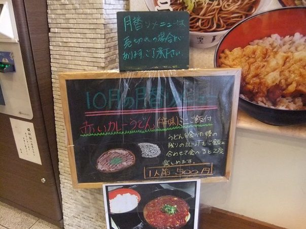 当店の独自メニューで10月限定の品が目当ての『 赤いカレーそば 』なのだが...  目立たないね
