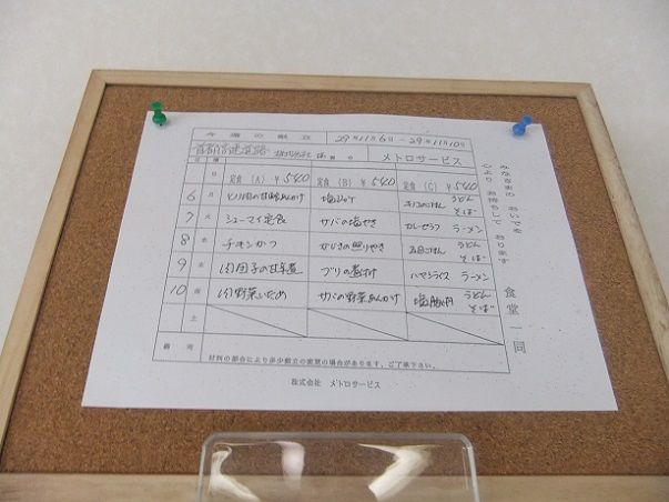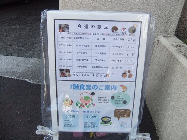 ビルの入口のところに献立が出ている。食堂があって一般の人の利用も可能なの