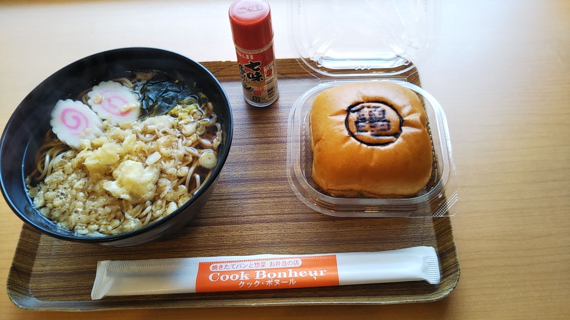 ということで、いただいたのは『たぬきそば』¥390と『亀有あんぱん』¥162。