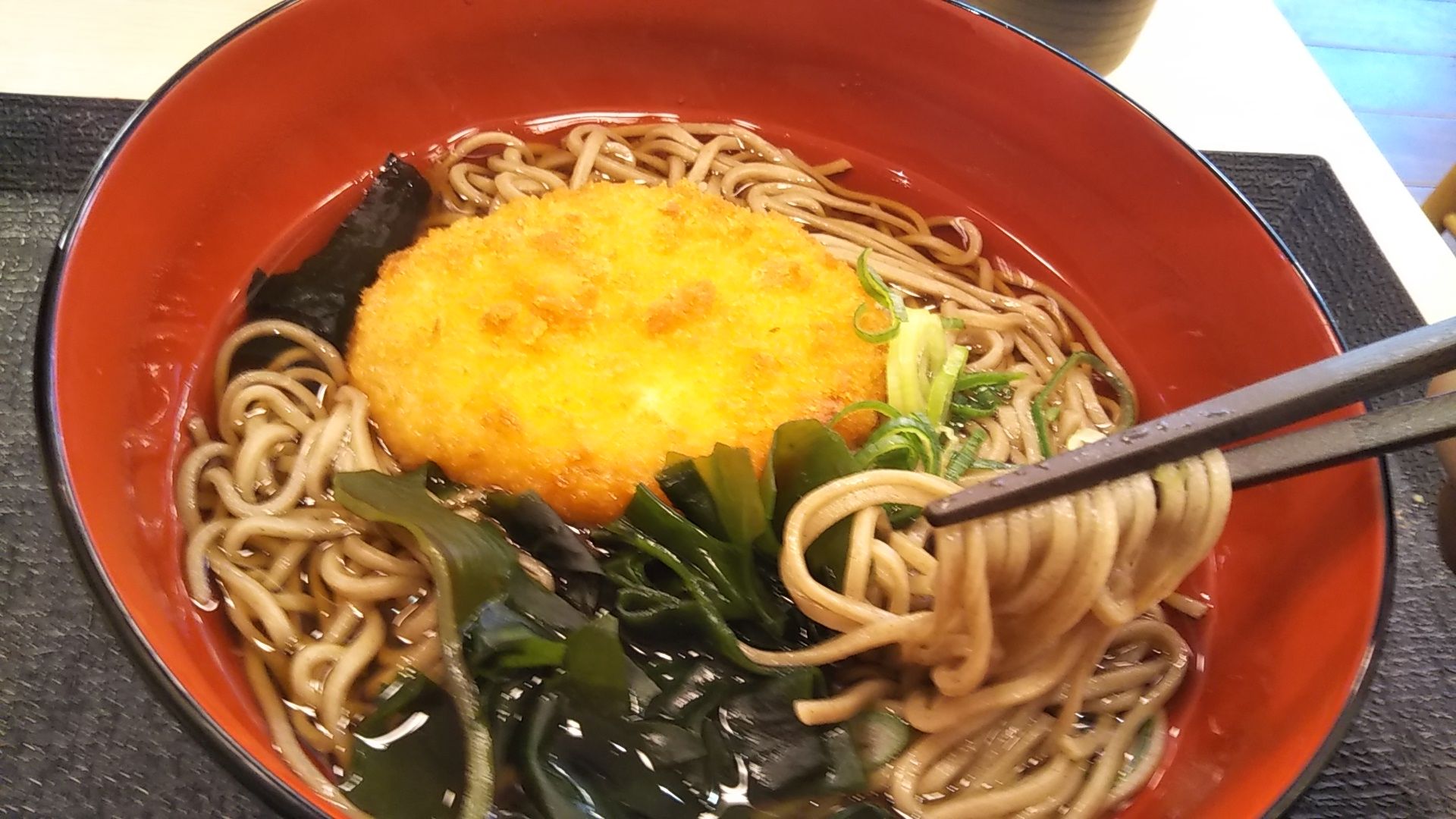 コロッケは、【箱根そば】のようなカレーコロッケじゃなくて、普通のジャガイモコロッケ。