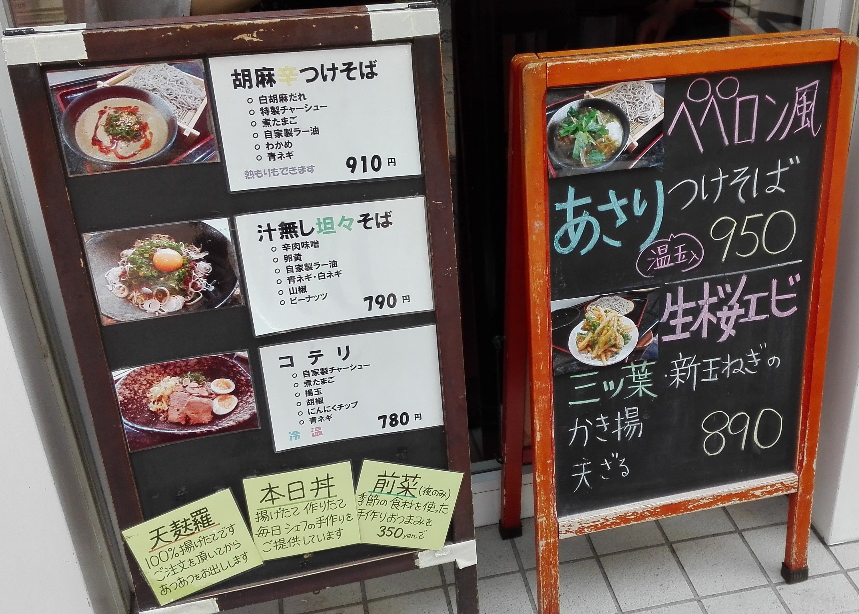 そのため、通常のそばメニューの他に独創的なオリジナルメニューもあって、メディアで取り上げられることも多い。立ち食いではないが、券売機・セルフ(水、配膳&下げ膳)・値段・カウンター席などの要素で、路麺のジャンルに入れられることが多い。
