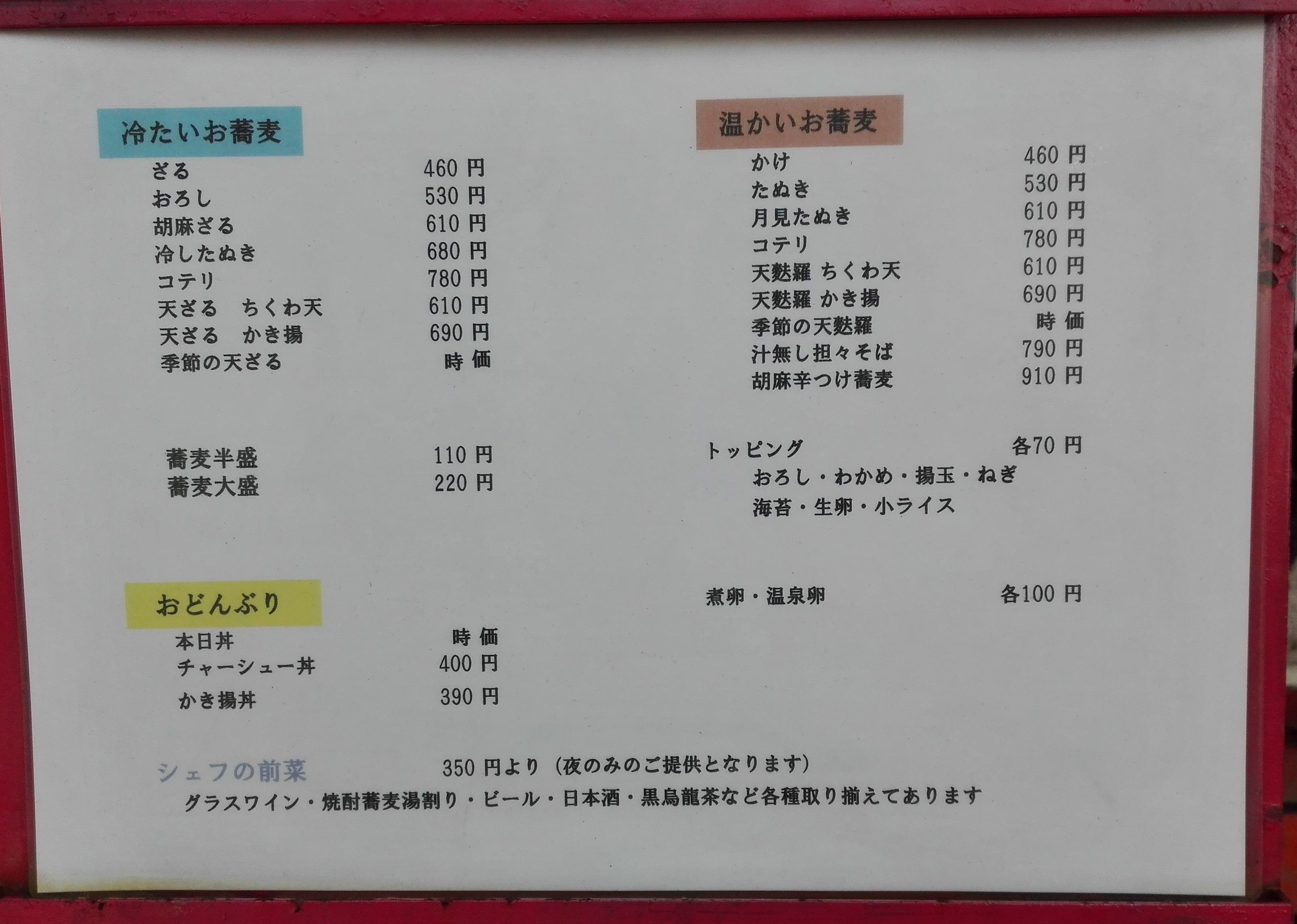 今日まで気づかなかったけど、看板と窓ガラスに「信州開田蕎麦」ってあるね。