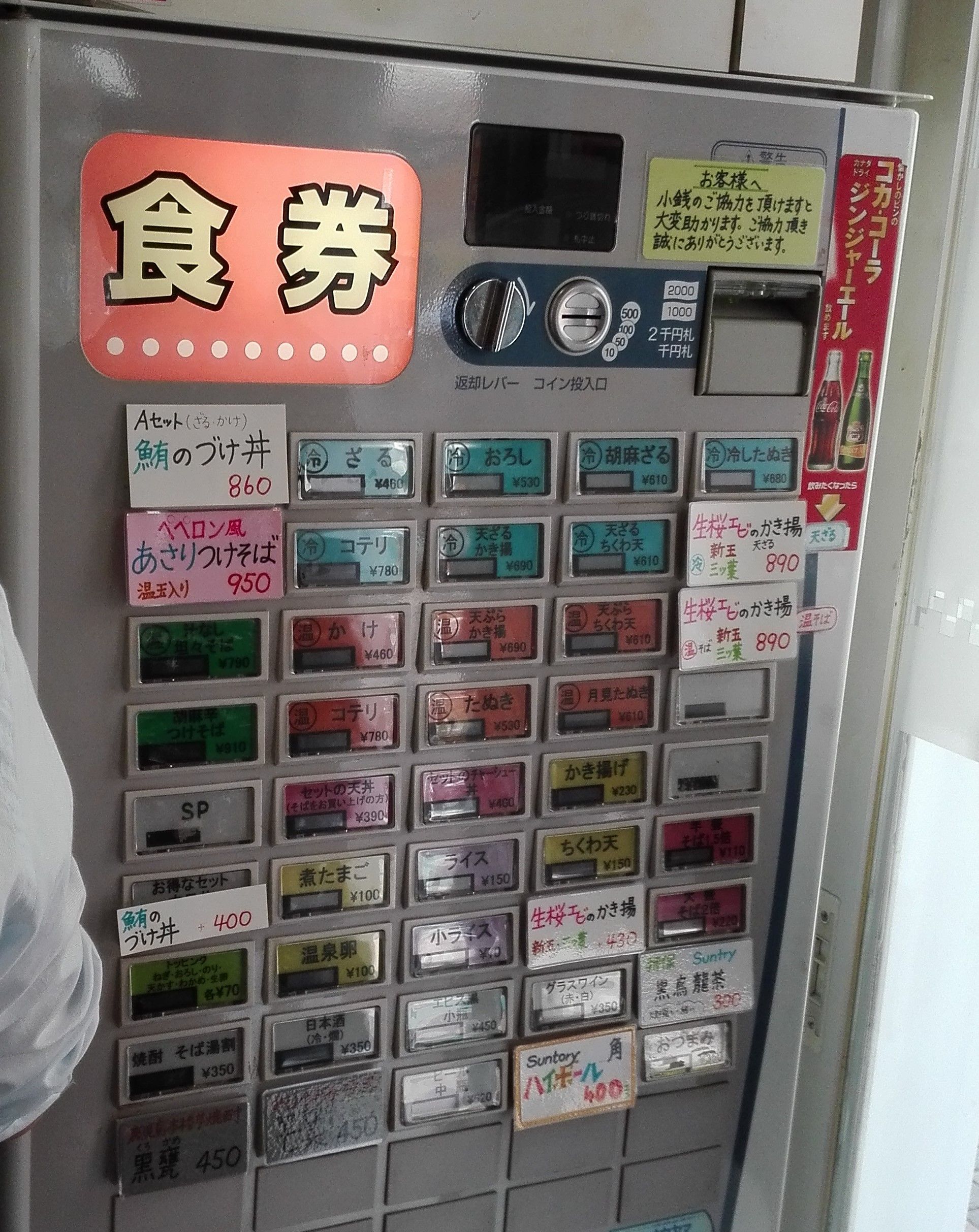 券売機。手書きメニューにも魅かれる品が多いのだが...