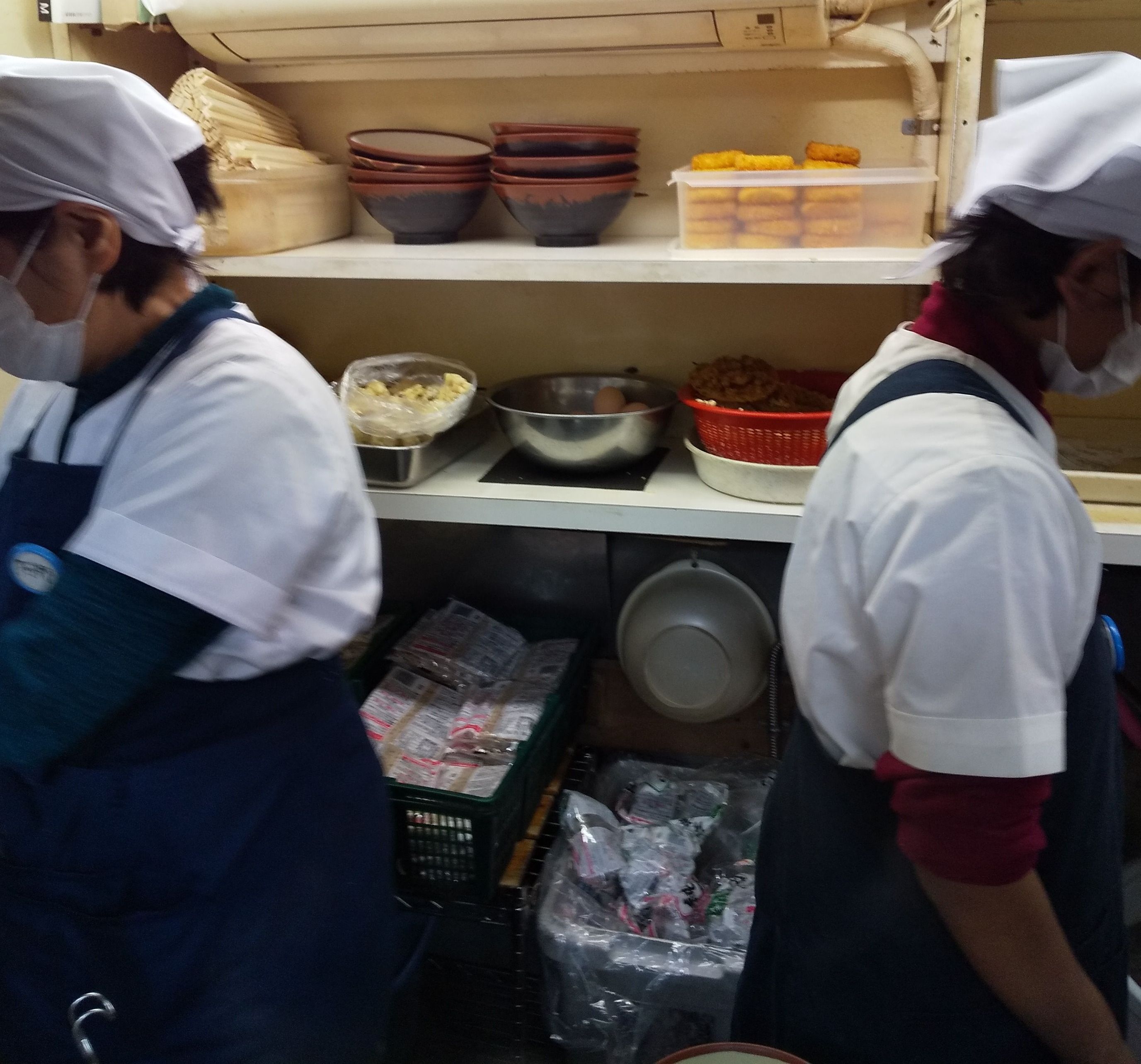路上で食べることに抵抗はないのだが、撮影が難しいのでカウンター確保。4人体制。ベテランおばちゃんたちはアジア系新人に優しく指導し、良好なチームワークが保たれている。