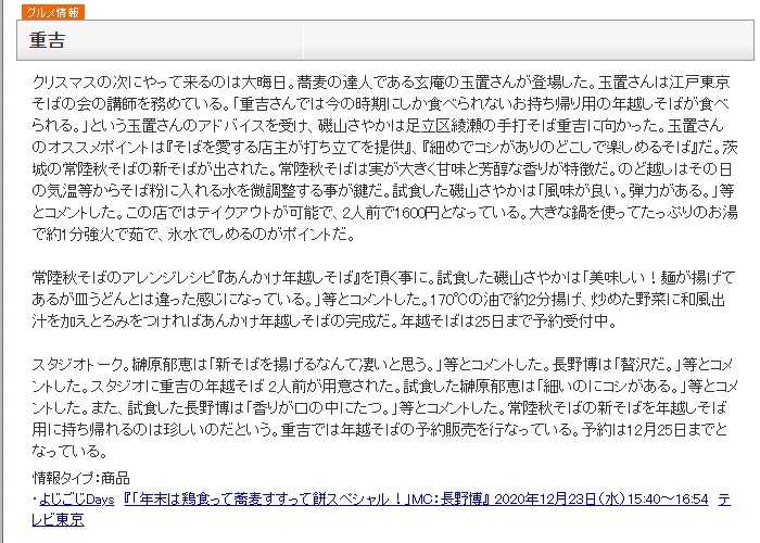 『蕎麦春秋Vol.60 2022年冬号』の「立木義浩のそば行脚」で紹介されている。●綾瀬3丁目 立ち食い蕎麦 酒処 稜 で … 2025.10.15