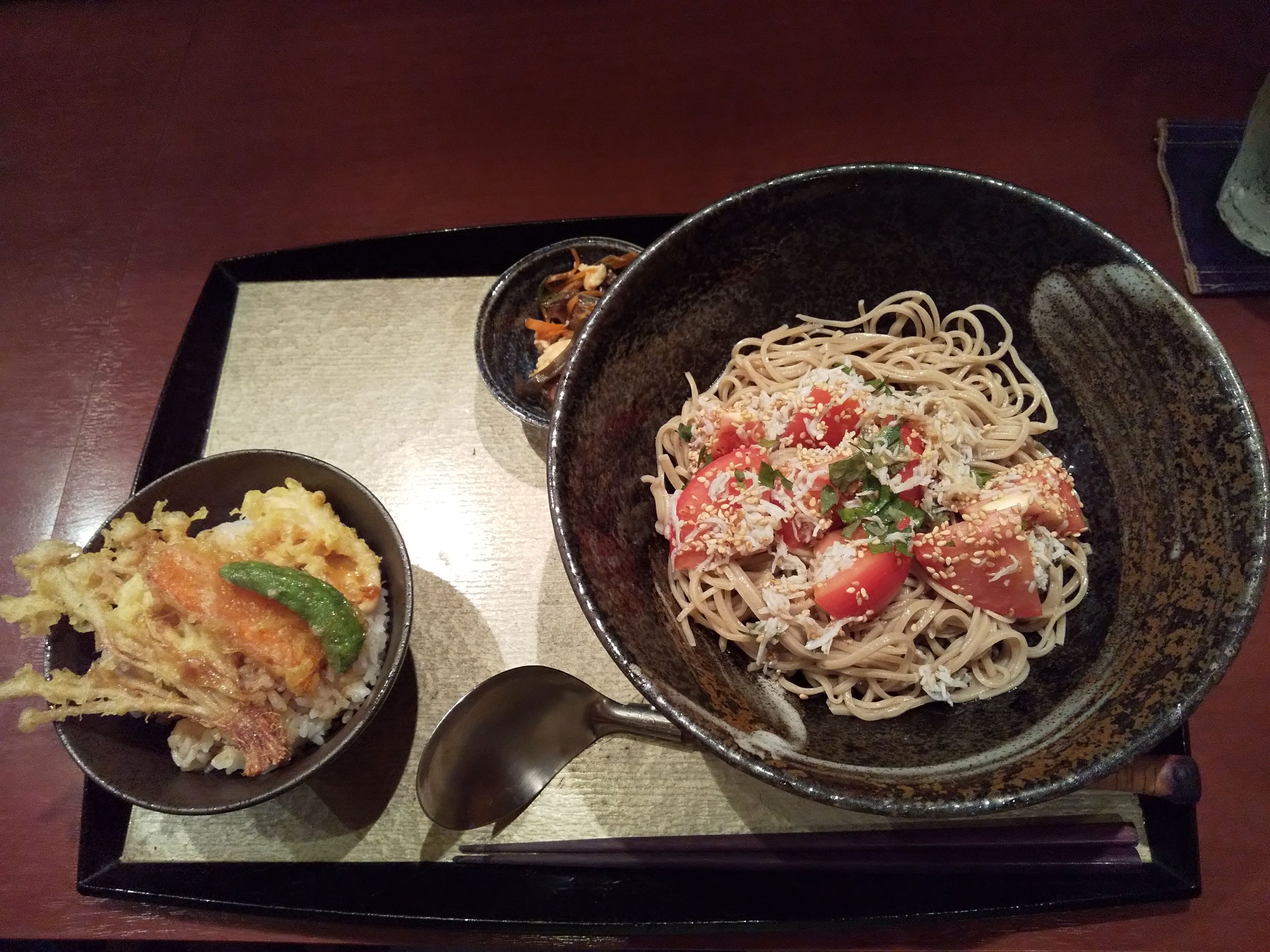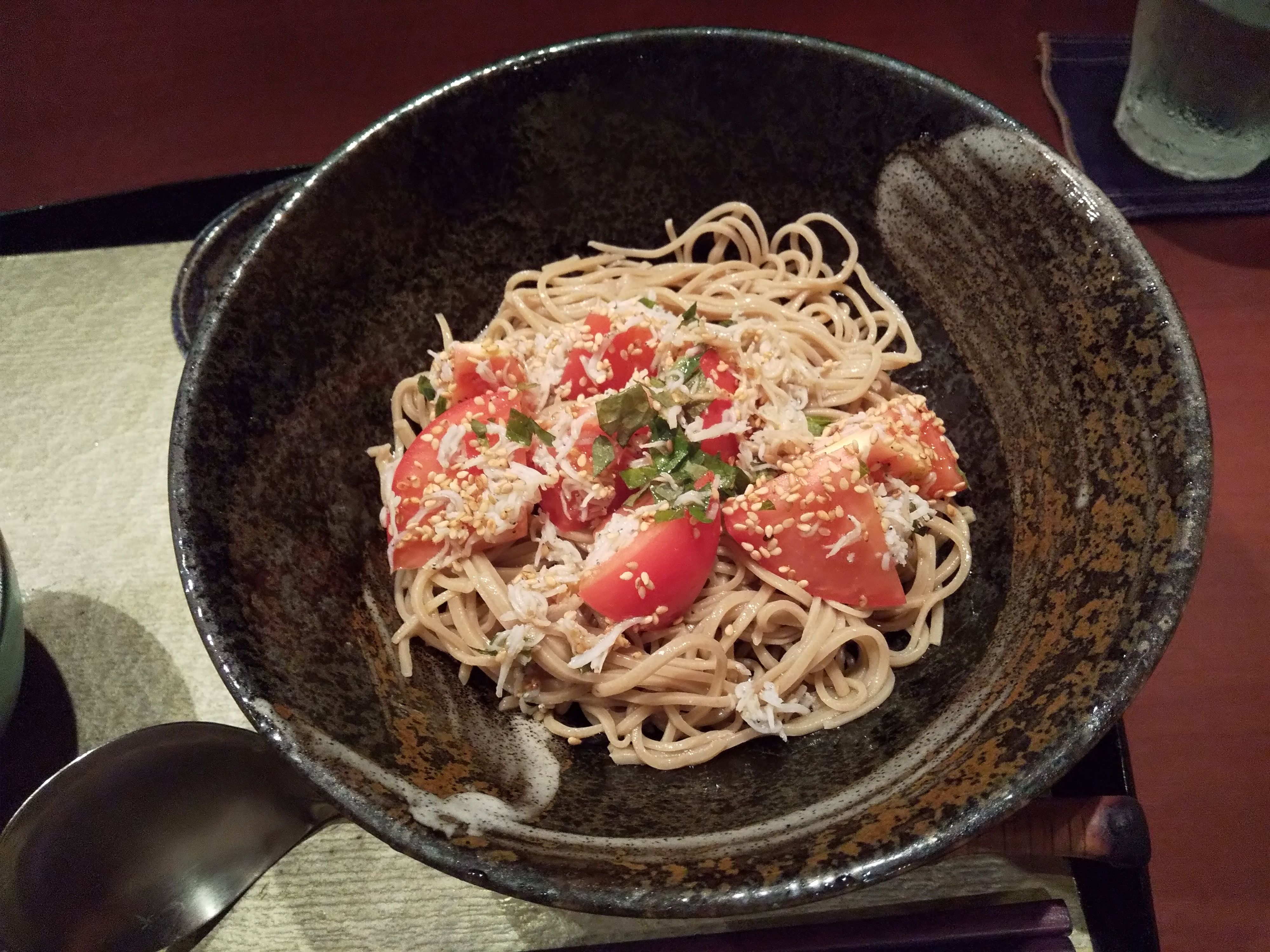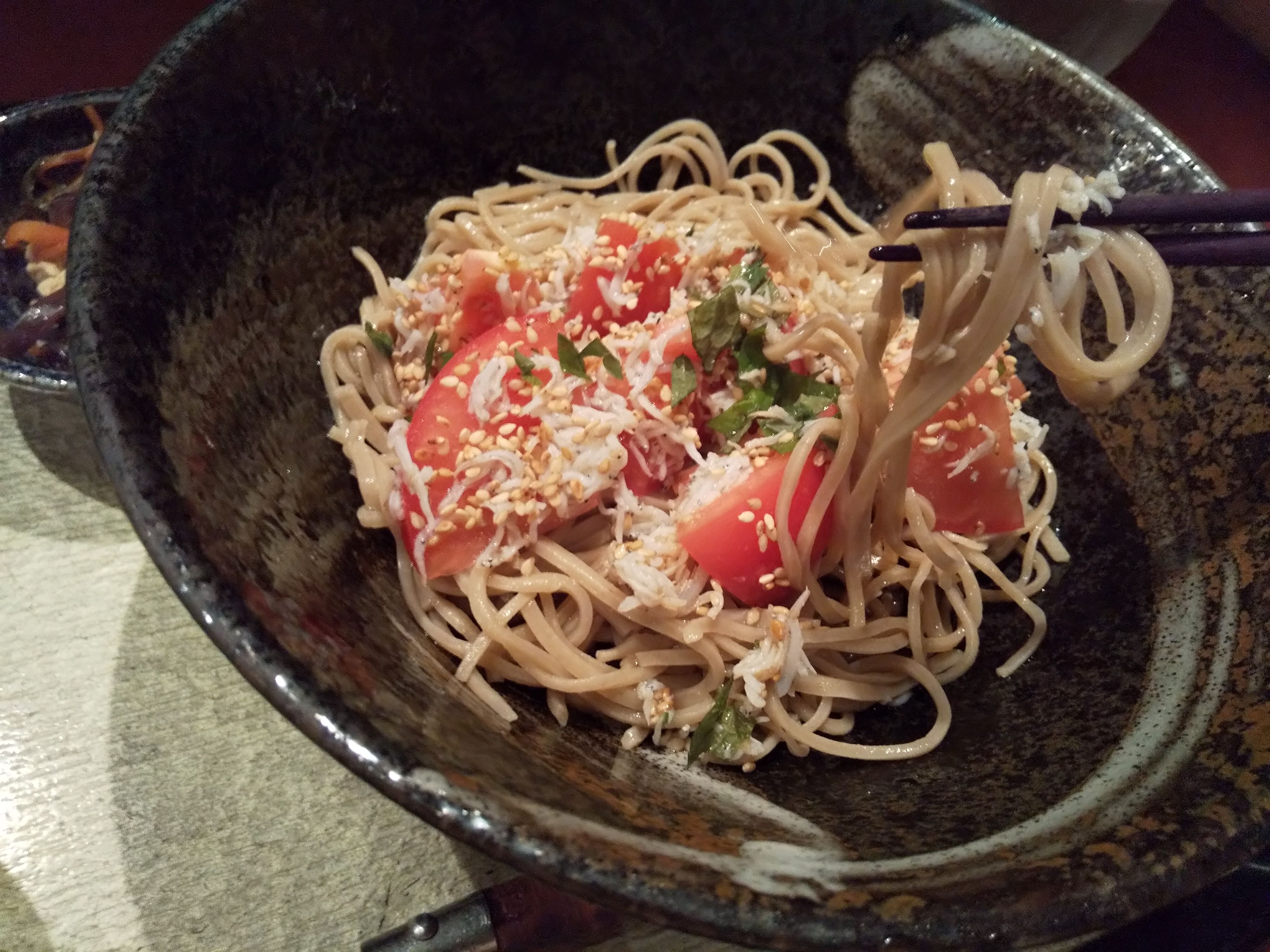 このトマトそば、なかなか美味しいね。酸味ほどほどのトマトと釜揚げしらす・胡麻がマッチ。