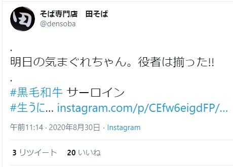 【田そば】 中央区日本橋小伝馬町3-7  twitter 紹介ページ 紹介ブログ