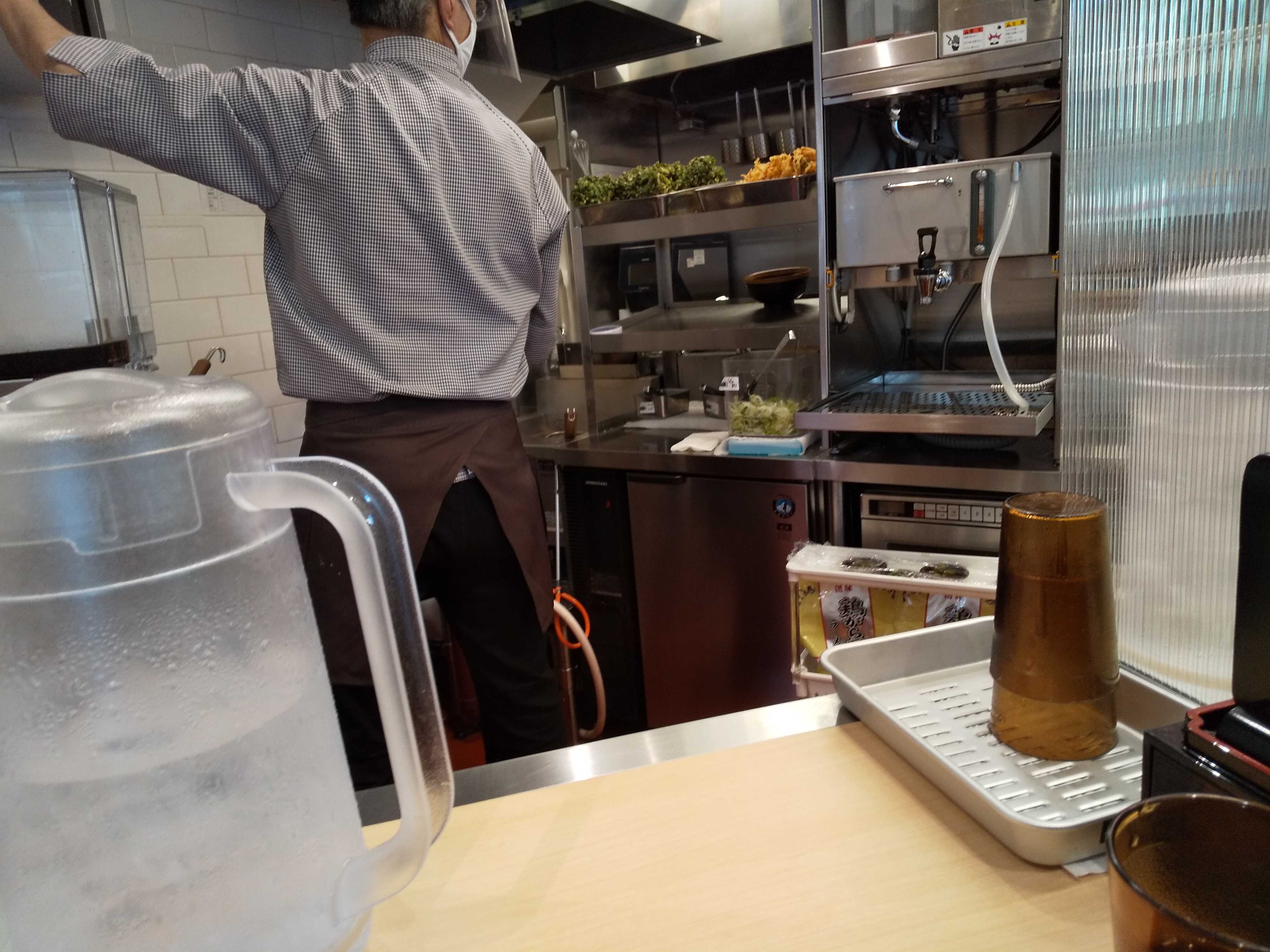 男性店員2人で切り盛り。そばは丼に入れてスタンバイ。うどんは袋入りで冷蔵庫で保管。