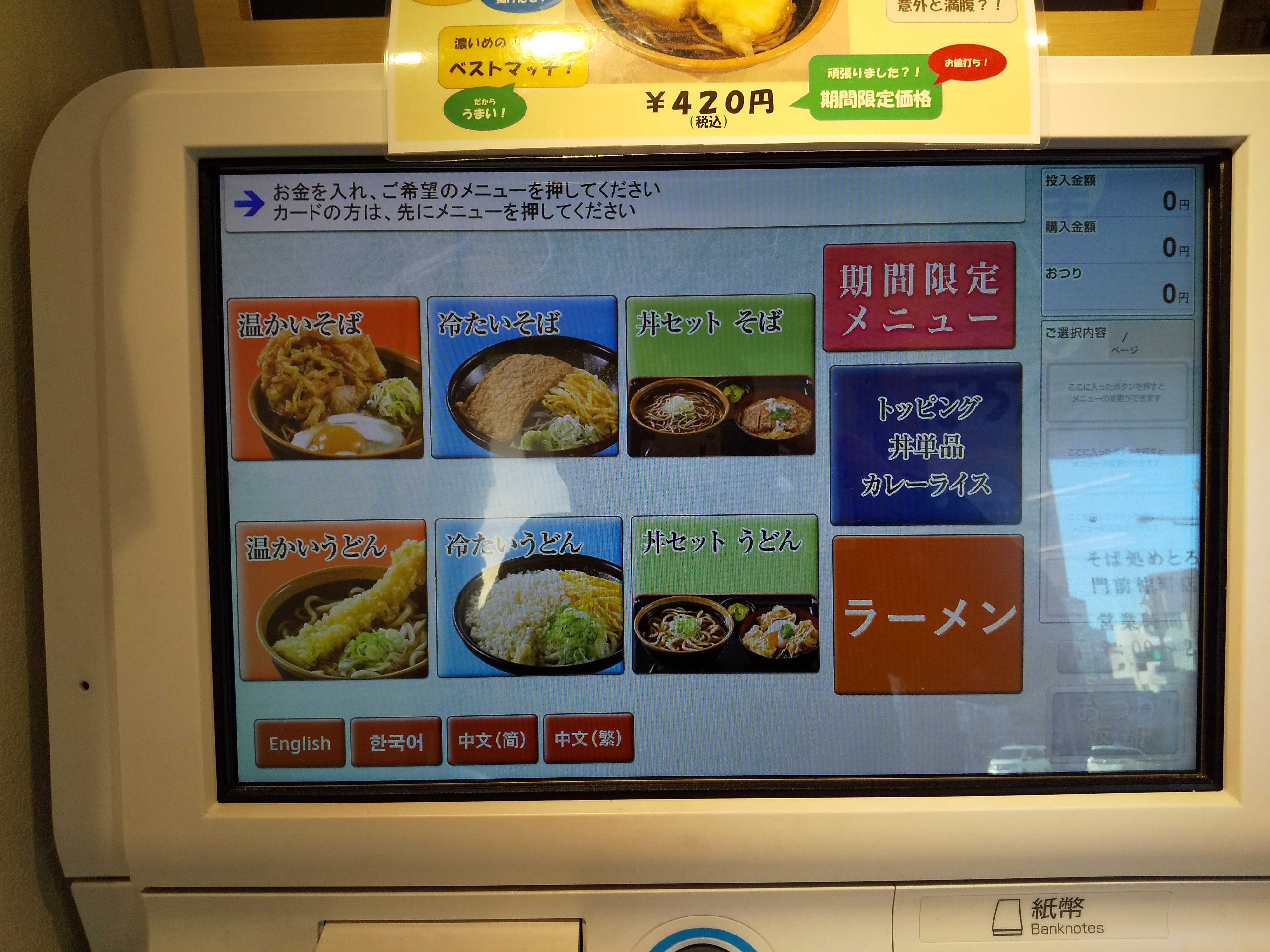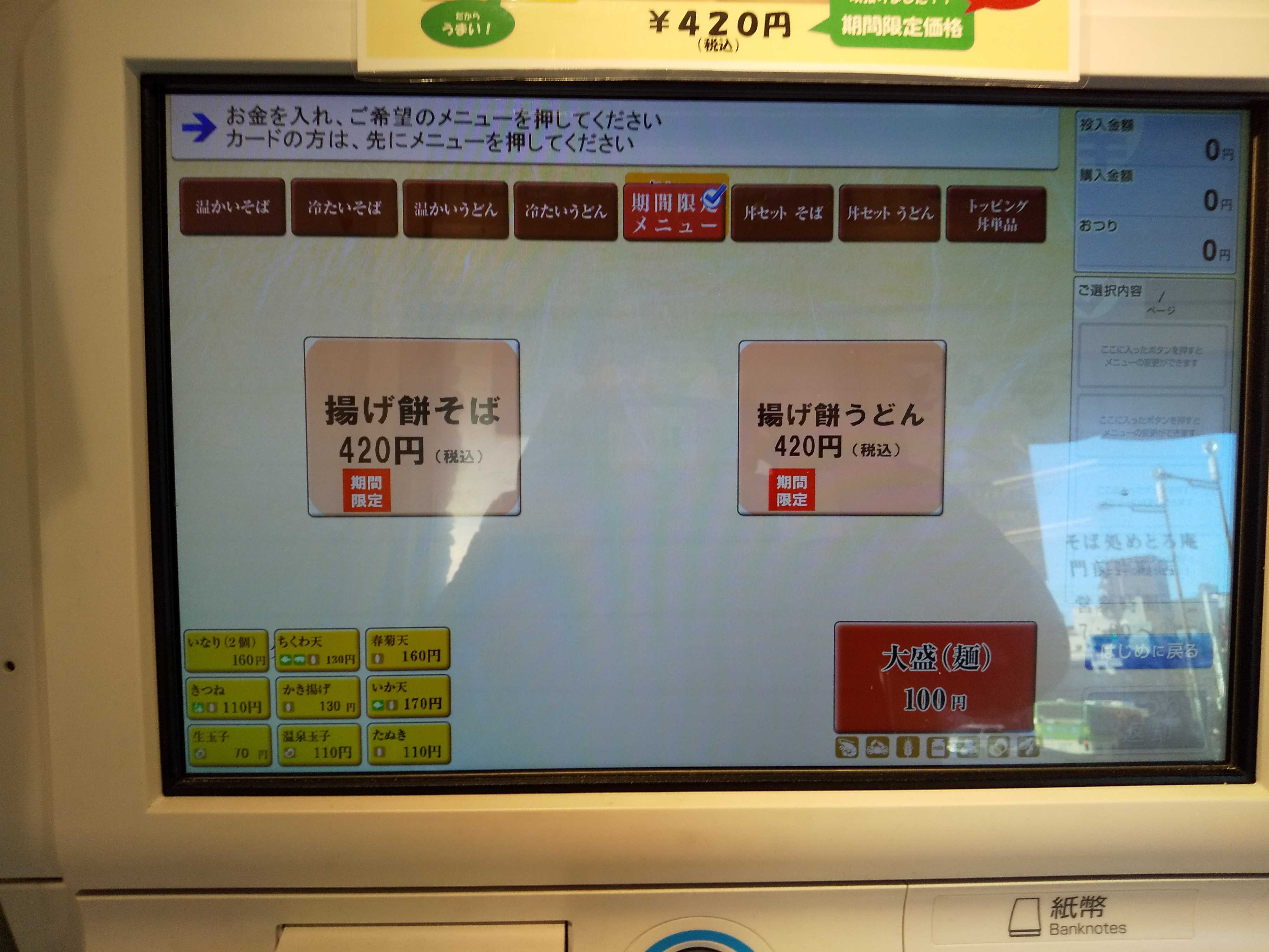 入店して券売機で食券を買う。「期間限定メニュー」をタッチ