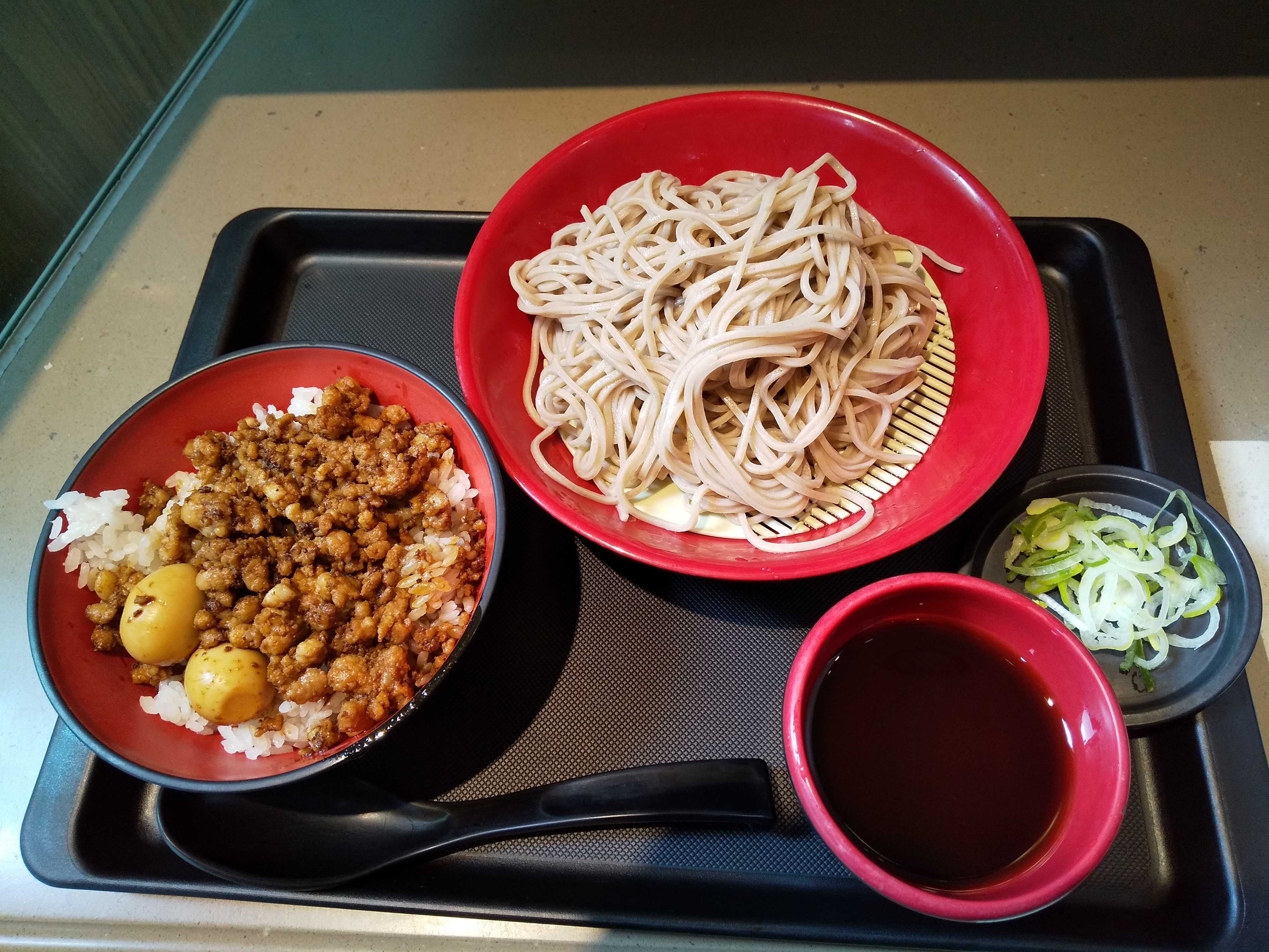 いただいたのは『ミニルーロー飯セット』\500。そばは冷たいの=『もりそば』で。