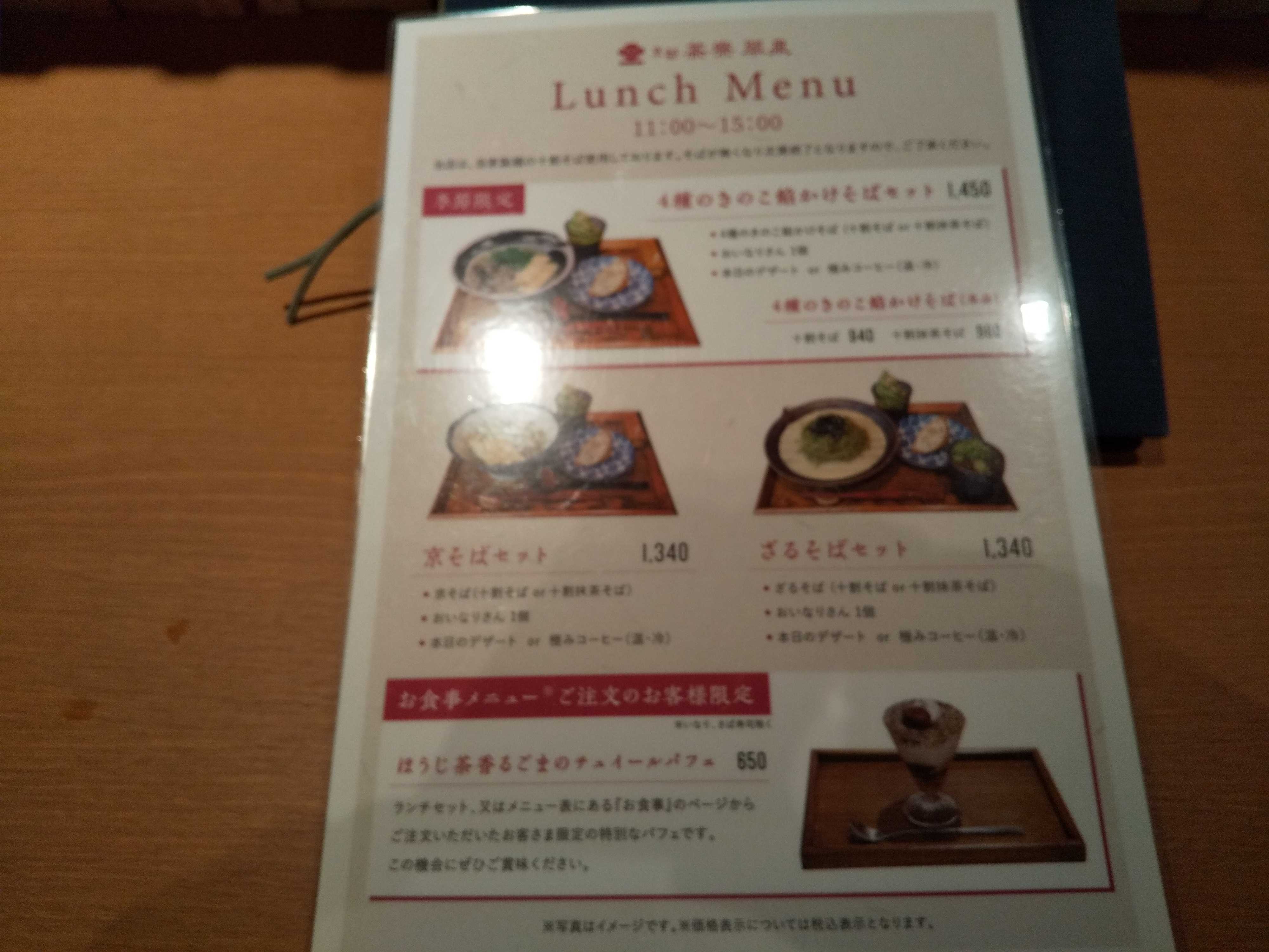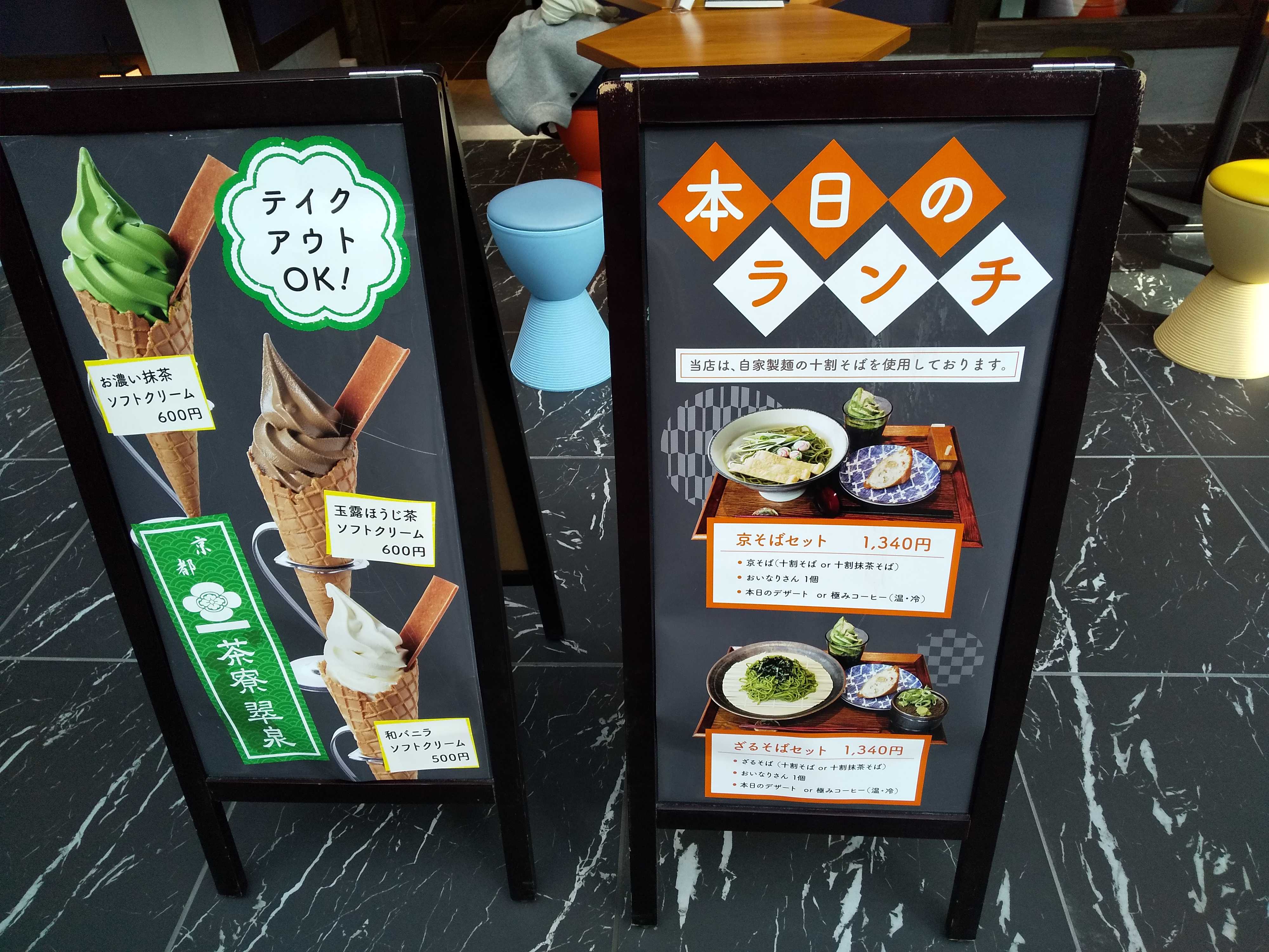 今回はお昼の利用。店頭にランチの茶そばメニューあり。