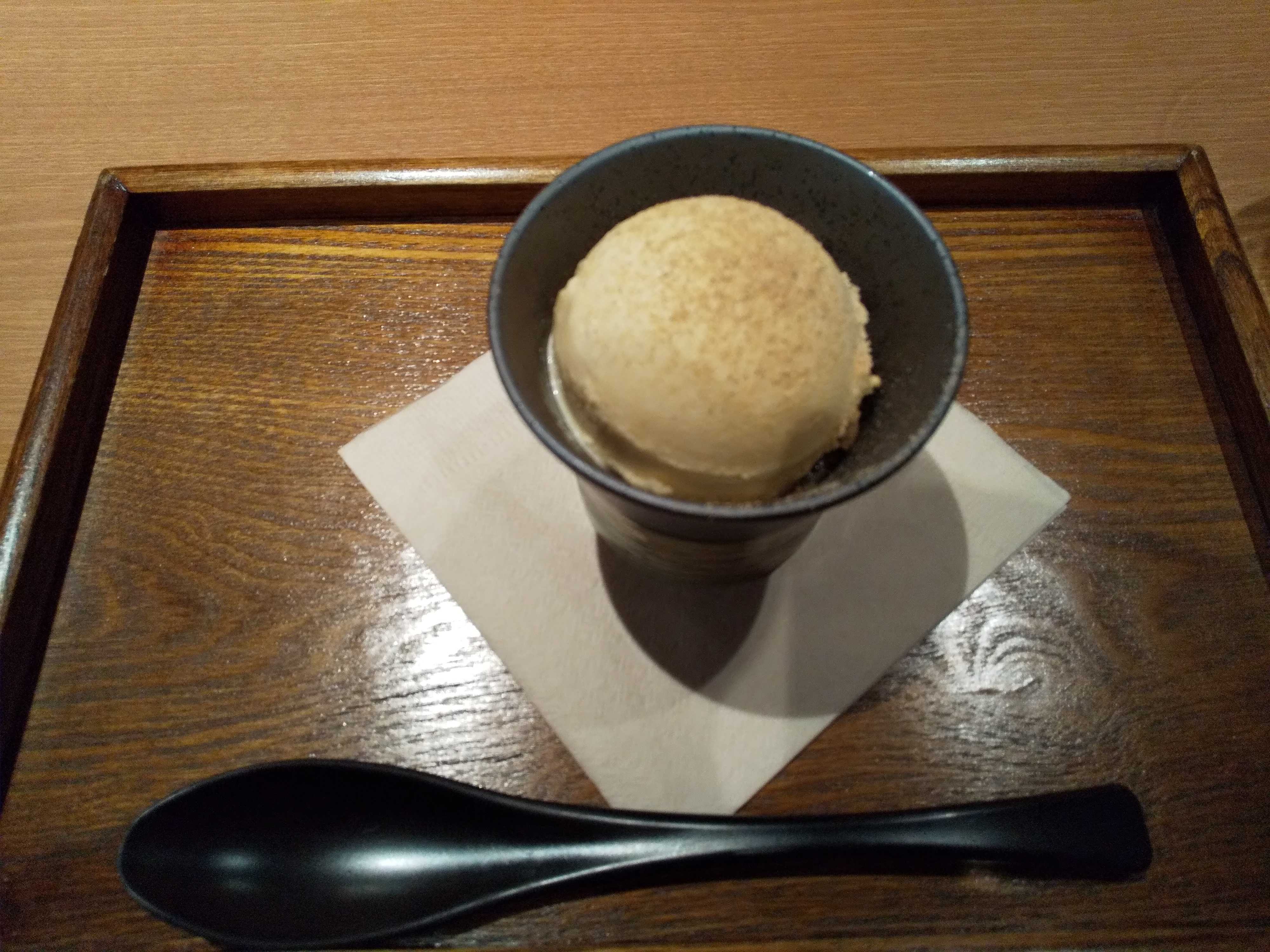 本日のデザート/極みコーヒー が選べ、デザートを選択。バニラアイスonわらび餅を美味しくいただく。