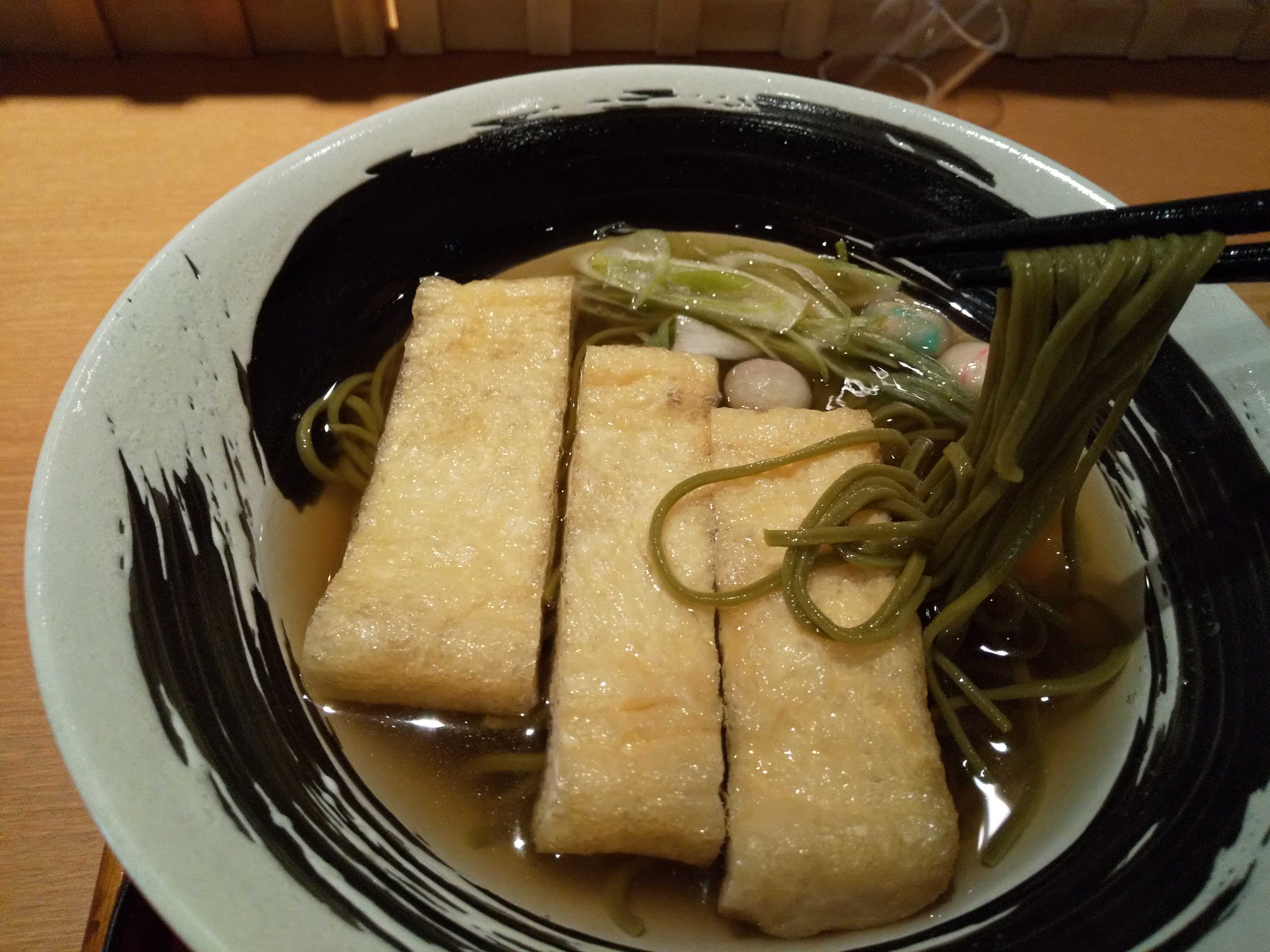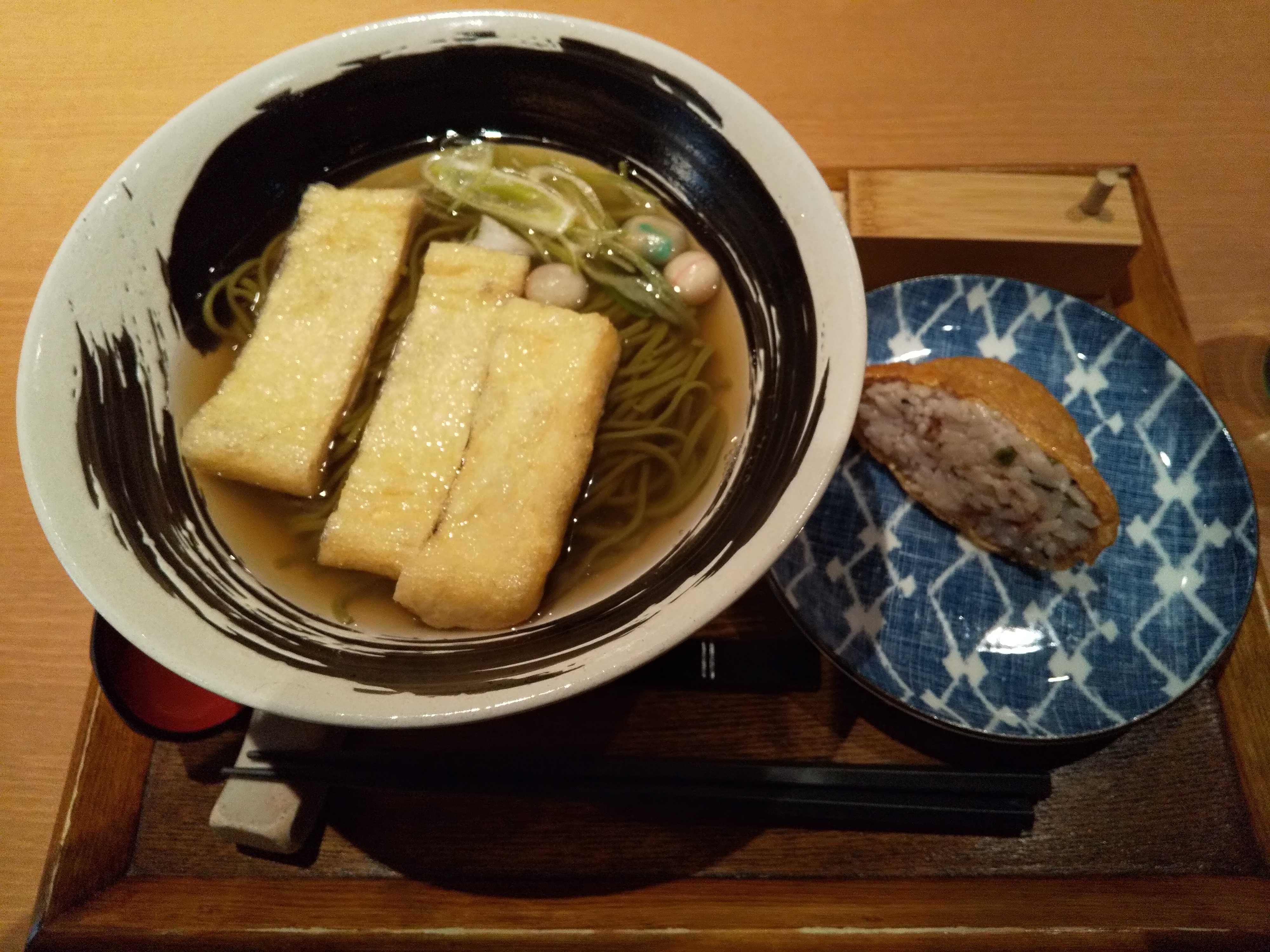 いただいたのは『茶そばセット』\1,340。おいなりさん付き。