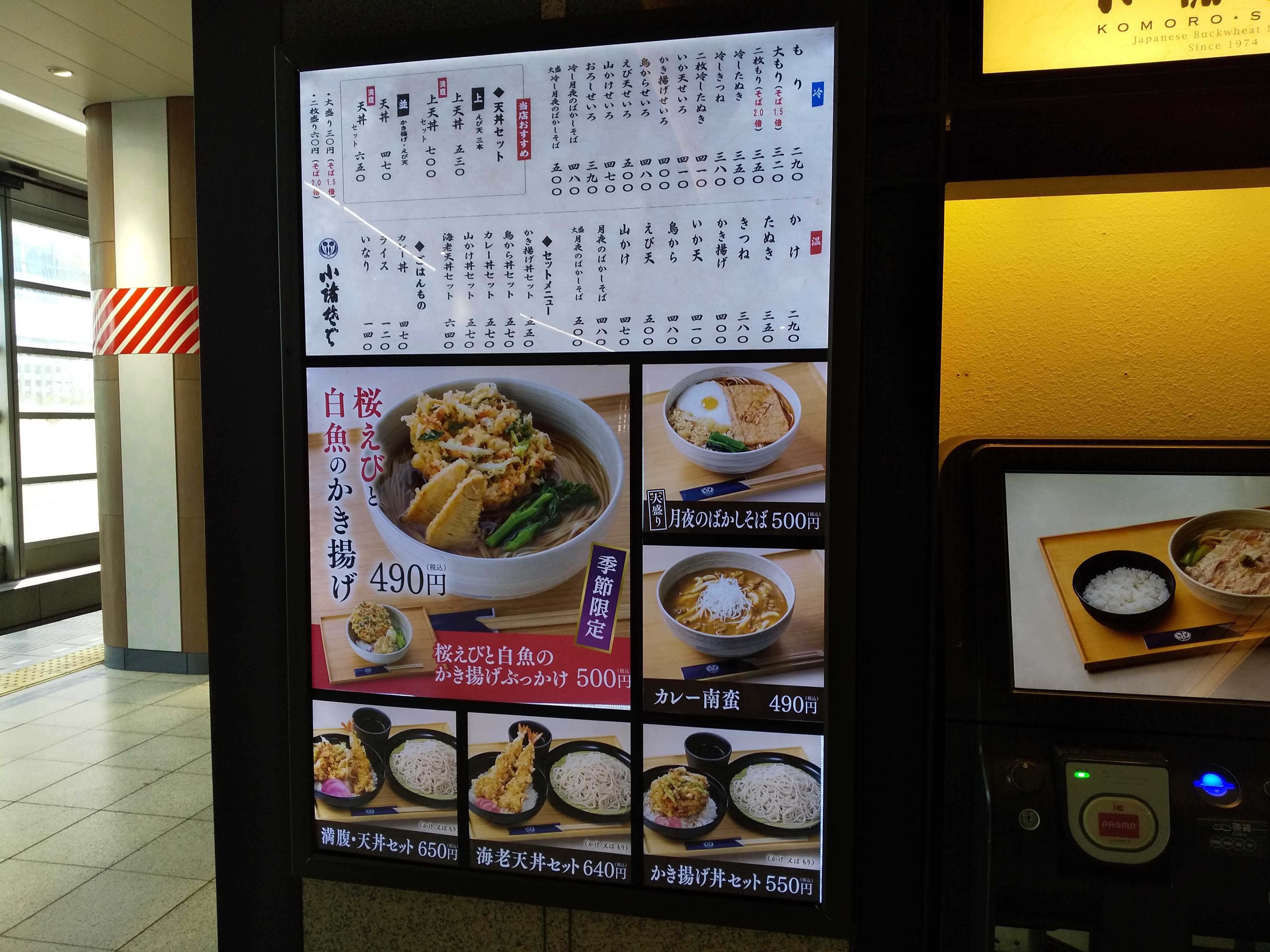 【小諸そば EQUiA 北千住店】 足立区千住旭町42-1東武線ホーム  ホームページ twitter