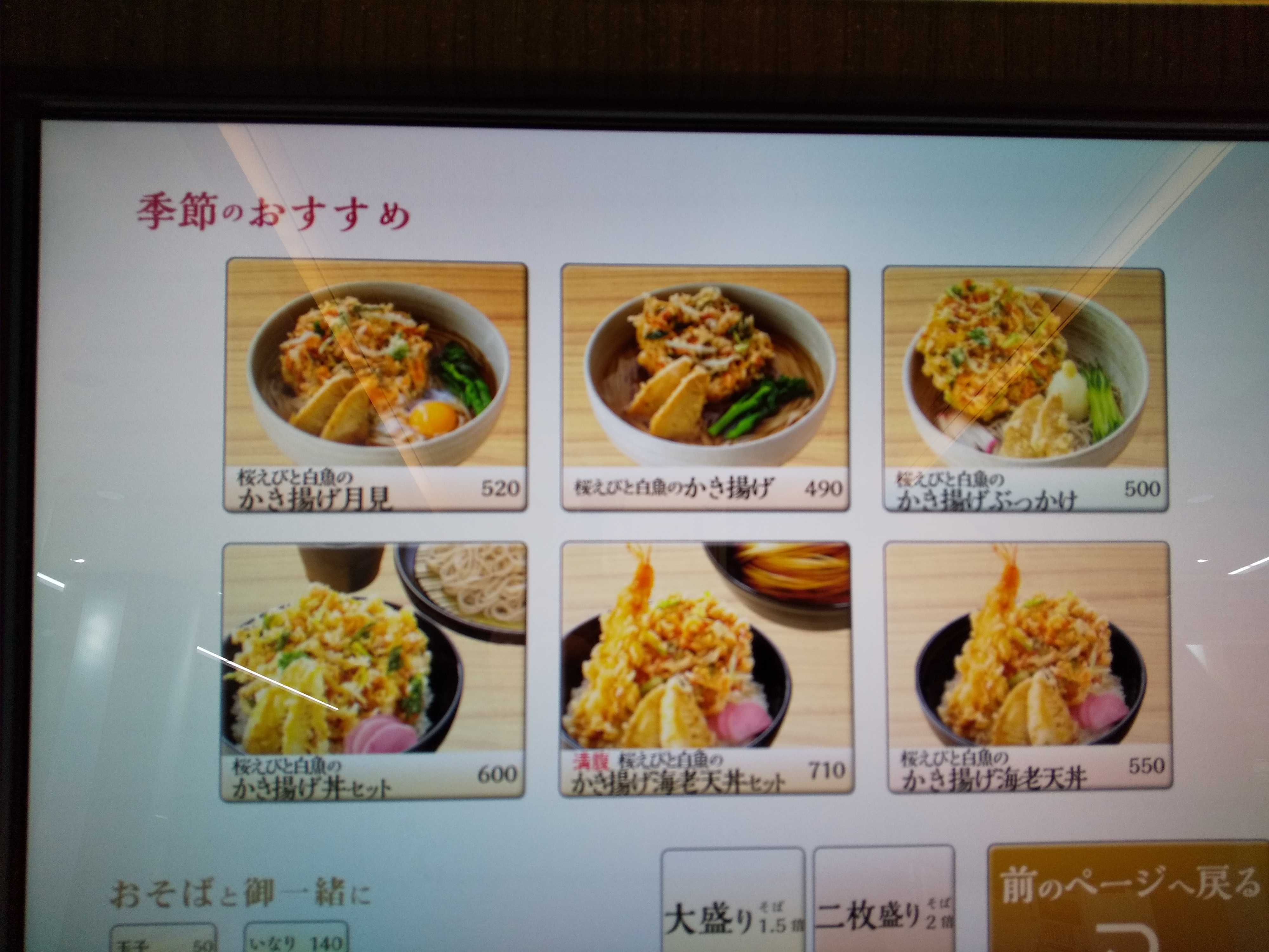 店頭の券売機で『桜えびと白魚のかき揚げ』シリーズのいずれかを食べようか、と考えたものの・・・