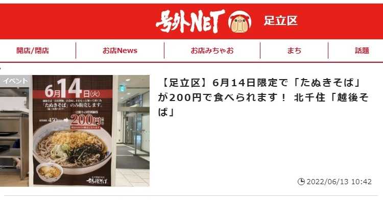 【越後そば 北千住店】 足立区千住3-92 千住ミルディスI番館1F  ホームページ