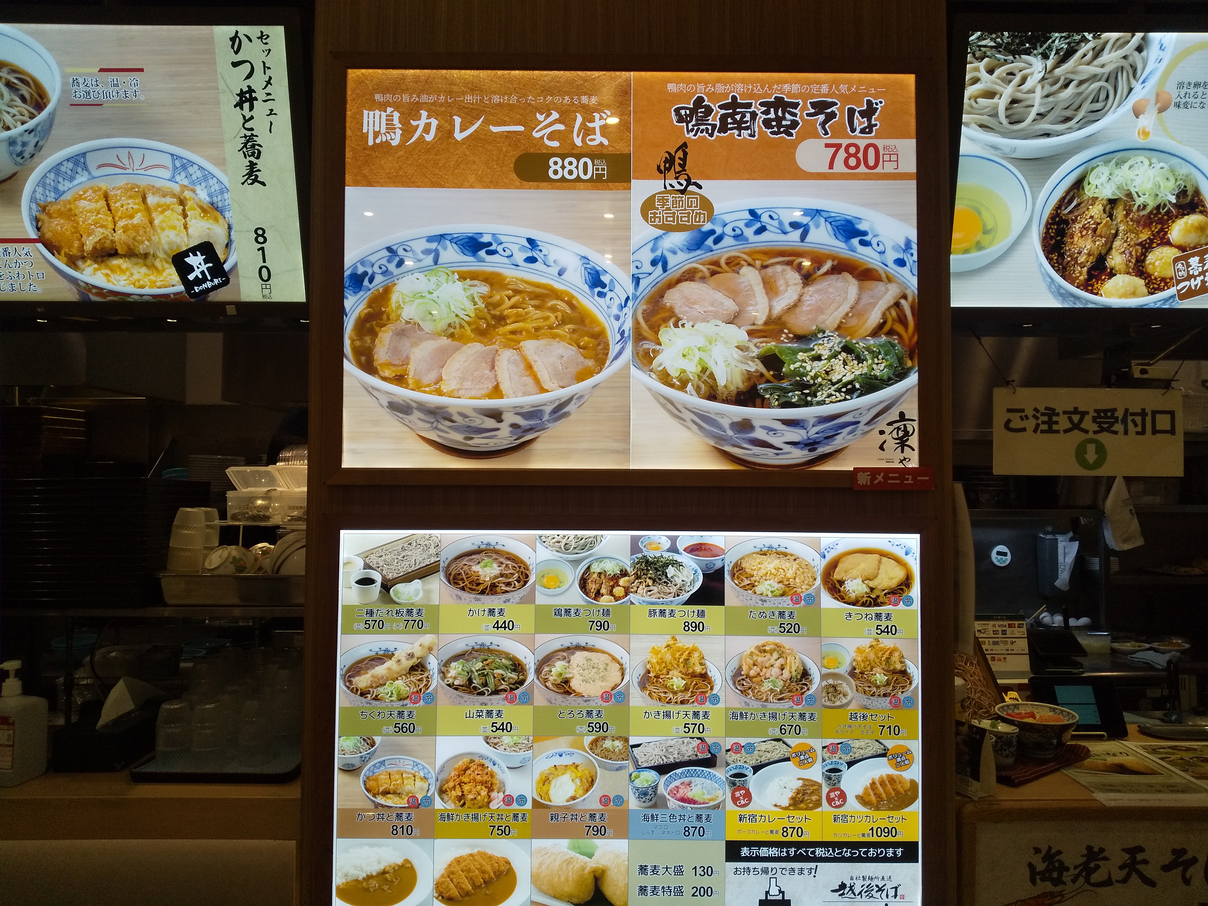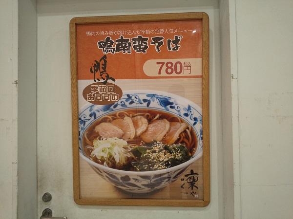 最近は明記することが少なくなった。今回は『鴨南蛮そば』の下に【凛や】があるものの『鴨カレーそば』には付いていないね