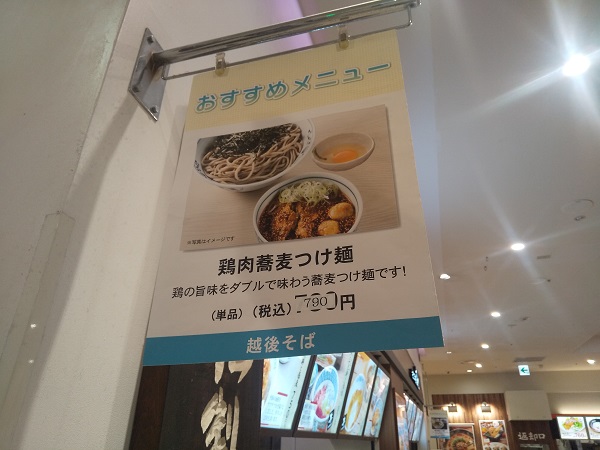 『鶏肉蕎麦つけ麺』は【越後そば】の屋号が付いているが、上記写真のように【おひつ御飯 凛や】の看板の下に掲げられている。