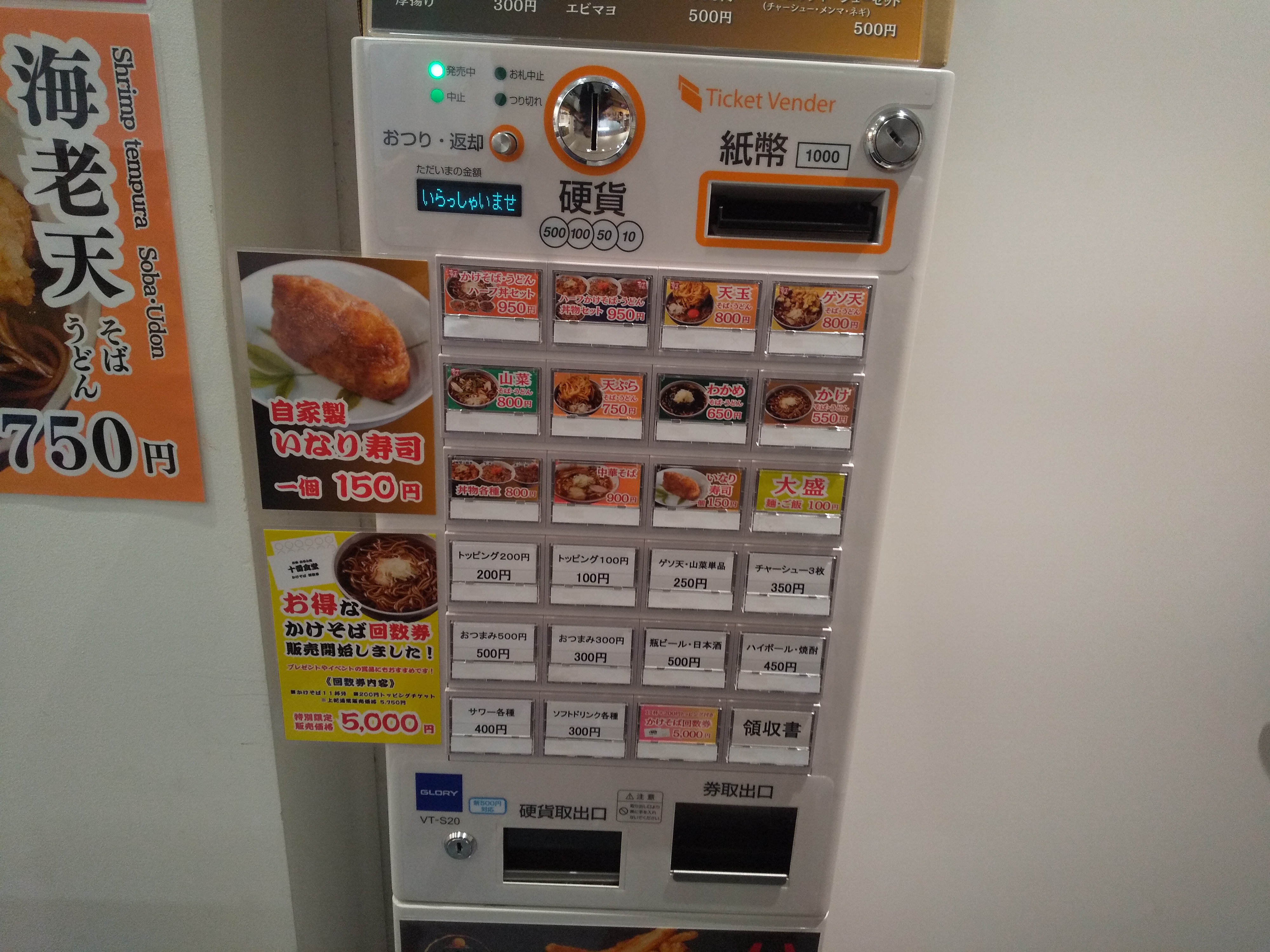 券売機。定番メニューのボタンは少なめにしてトッピングでカバー。