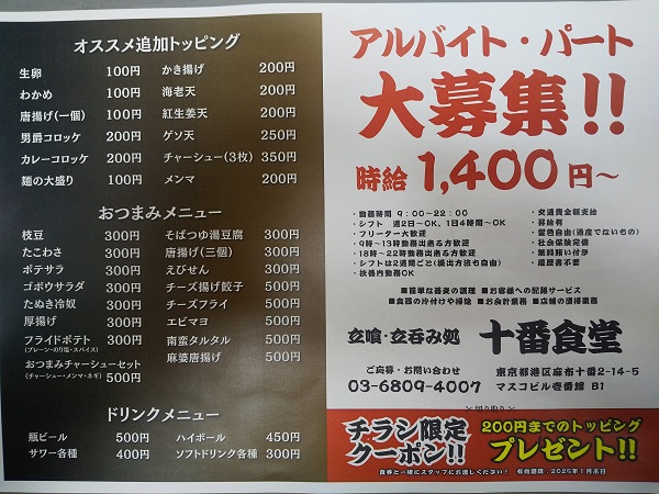【立喰処 十番食堂】 港区麻布十番2-14-5 マスコビル麻布壱番館B1F  そらすの喰歴 掲載店