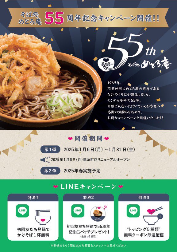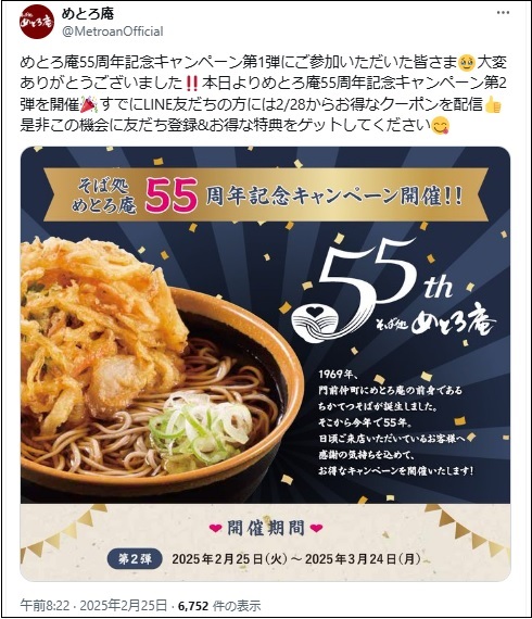 めとろ庵55周年記念キャンペーン第2弾が2月25日から3月24日まで開催されたが、今回は参加せず