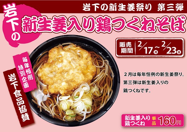 昨年2月第1週の『岩下の新生姜エリンギ天そば』は 新宿西口2号店でいただいた