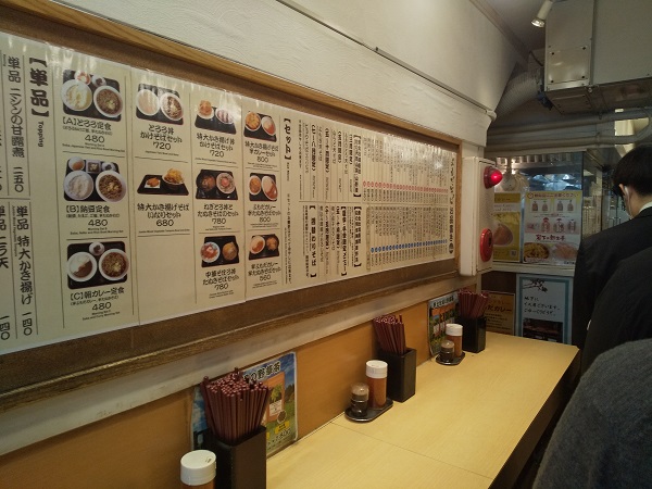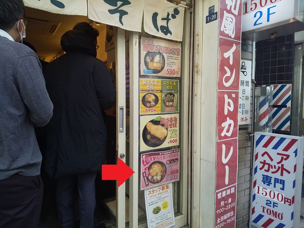 当店には、お昼の繁忙時間帯に来た記憶がないんだけど、お店の狭さ故か、左側の立ち食いカウンターは使わず(使えず)に行列になっていて、反対側の壁向きカウンターの空き具合をみて注文品が提供されるようになっているんだね  並んでいる人たちへの店員からの呼びかけはなく、客の間での暗黙の了承となっているんだねびっくり