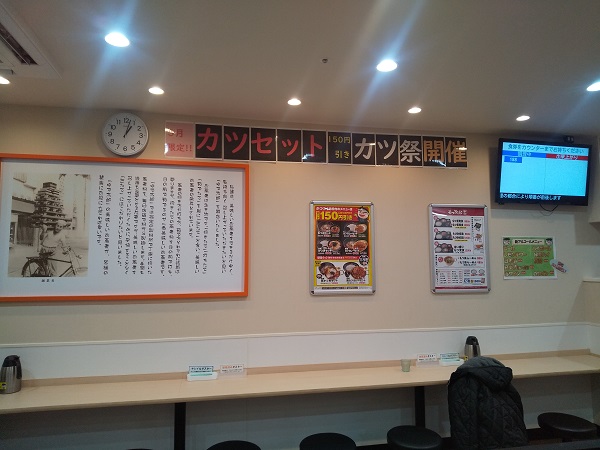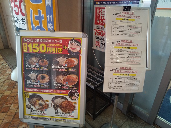 店頭  3月のキャンペーンの「かつ祭」の品をいただこう。