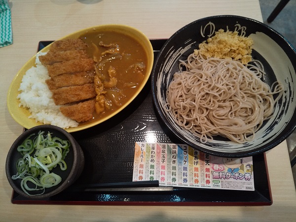 いただいたのは『満腹カツカレーセット』\900。冷たいそばを選択。 クーポンGet
