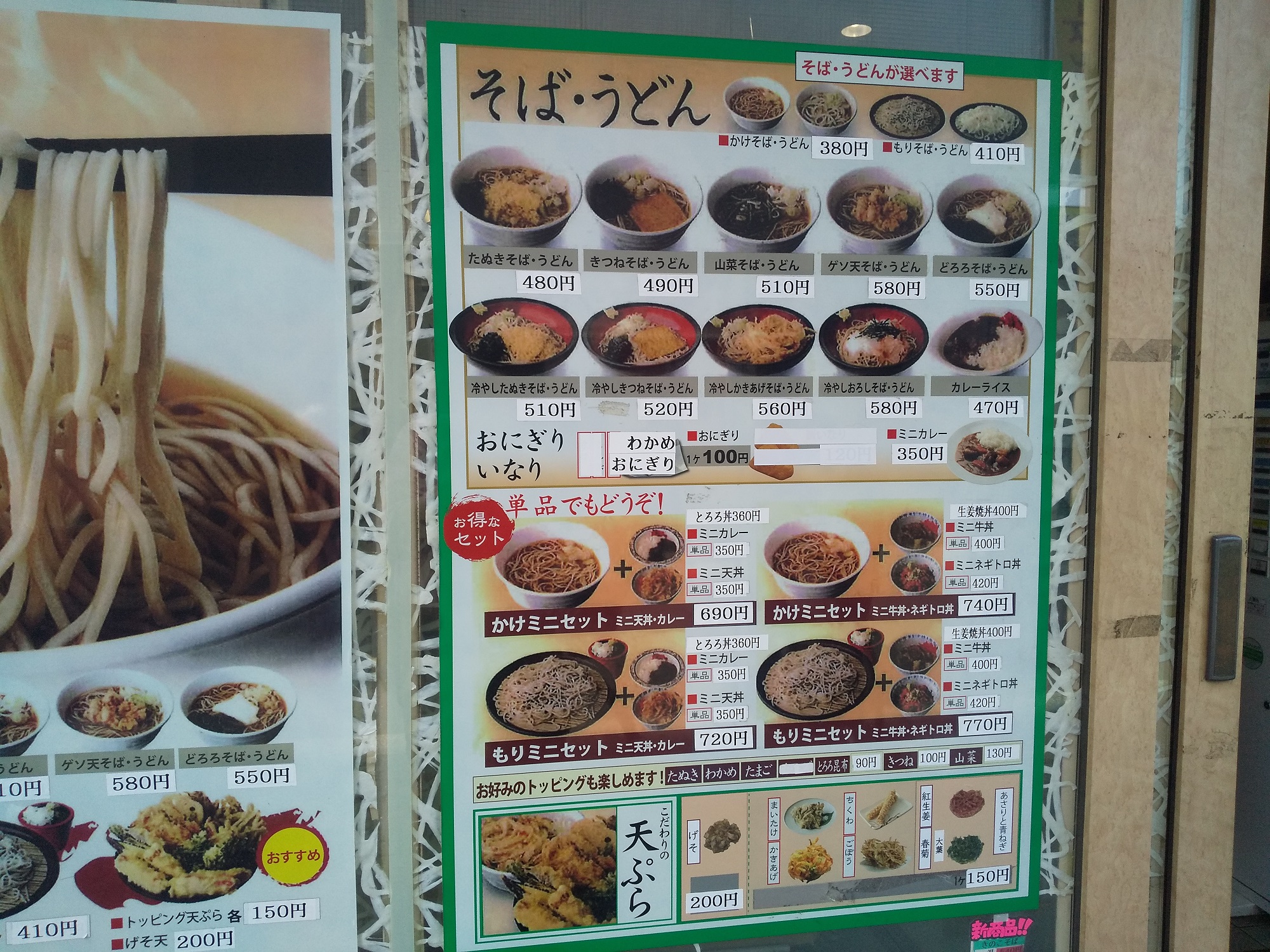 『お好みそば・うどん』は げそ以外の天ぷらそばね。