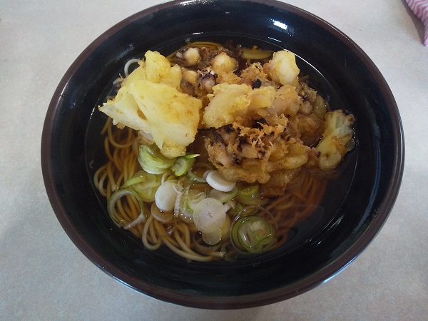 細いそば、コリコリのげそ、つゆ、すべて良し。特にげそが良かったね