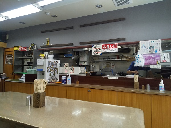 椅子付きテーブル席に陣取る。箸の先端が尖っている。逆さに入れているのかと思ったら、両端とも尖った割り箸なんだね。