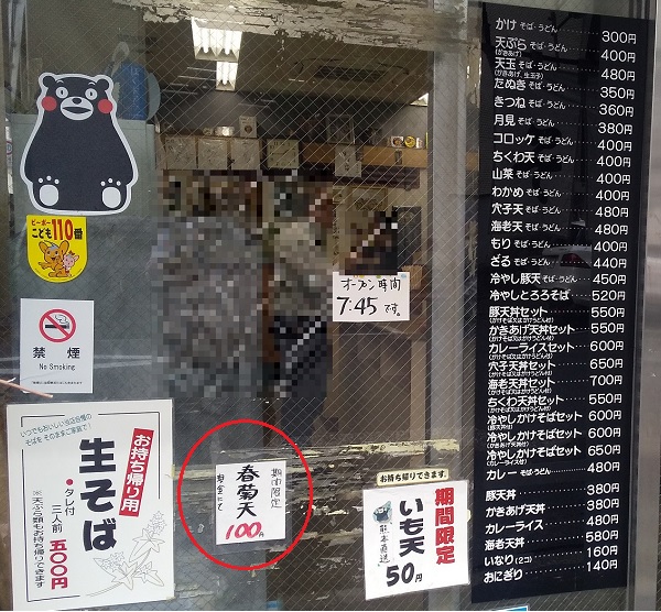 店頭  好物の春菊天は期間限定品なんだね。食べられるかな?