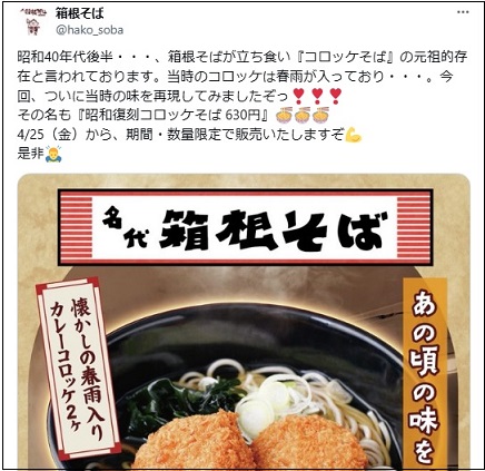注:【箱根そば】は1965年(昭和40年)8月に誕生しました。