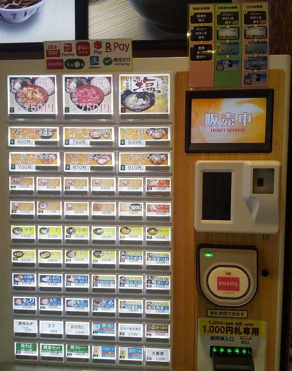 入店して券売機。2台あるが両方とも多種決済可能な機種に変わっていた