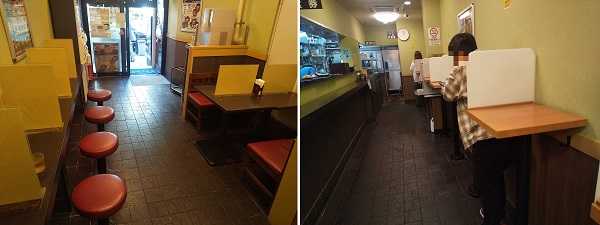 店内はカウンター席とテーブル席があり、パーティションで仕切られている。