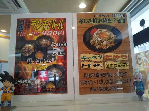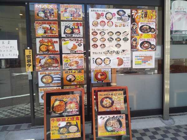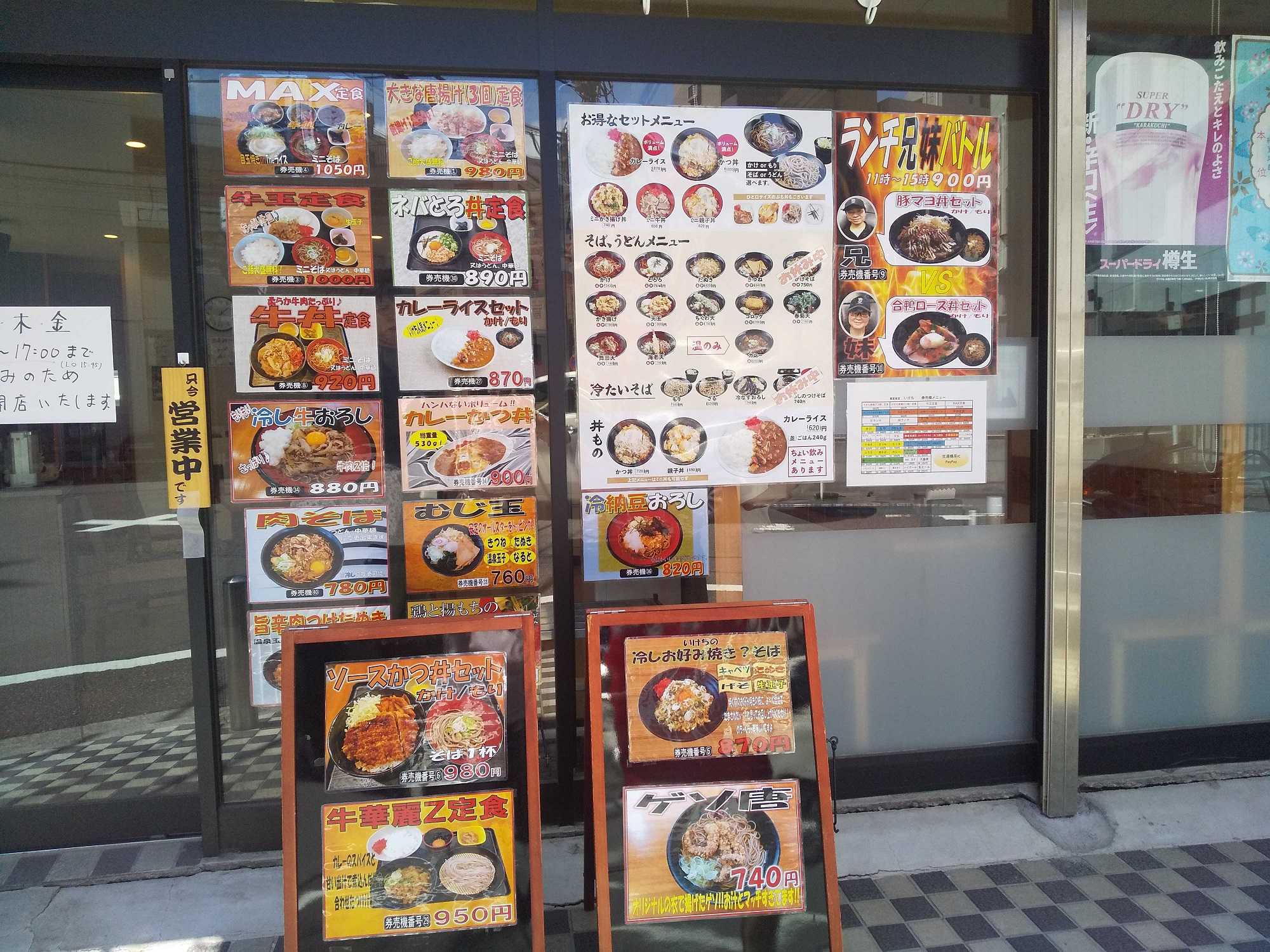 店頭には豊富なメニュー。私が魅かれたのは右下2番目の『お好み焼き』風のそば
