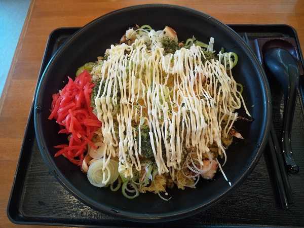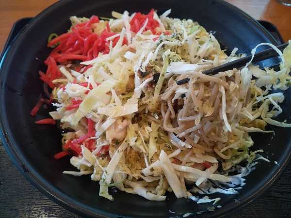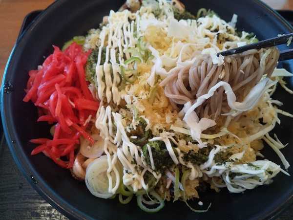しばし待って『いけちの冷しお好み焼き?そば』\870。マヨネーズの有無を尋ねられ、バエることも考慮してマヨネーズをかけてもらった。
