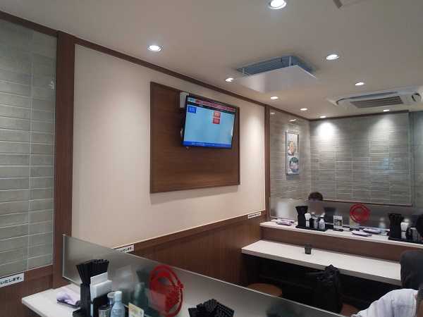自動オーダー。進捗状況表示モニター。日本語がちょっと下手な機械音声案内。