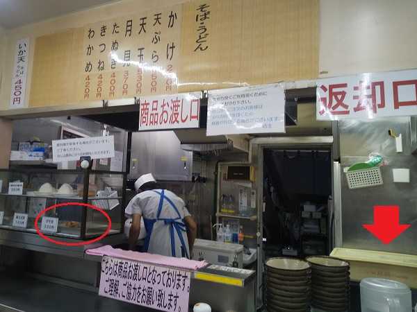 お店に到着時は混んでいた。向かい側の2・3番線ホームの店に移ろうかと思ったが、当店の写真をたくさん撮った後だったので空くのを待つ。やがて、空きができたので食券を買って入店して渡す。ゲソが前客でなくなりそうで心配したが、右側の番重にたくさん詰め込まれていた。
