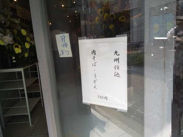 店頭に「九州仕込み」「肉そば・うどん」の貼紙。とりあえず、候補としておこう