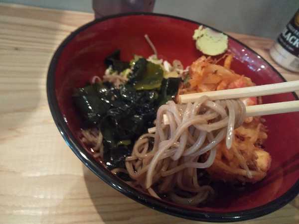 そばは冷凍麺。普通に美味しい。『特製イカかき揚』はイカ・海老・玉葱・紅生姜のかき揚げで、「ゲソかき揚げを越えた一品」と称していて確かに美味しいね。