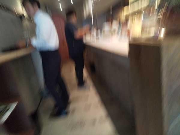 奥まで進む。厨房に男女ふたり。厨房向きカウンターだと距離が近すぎる感じがして写真が撮りづらいから壁向きカウンターに場所確保。